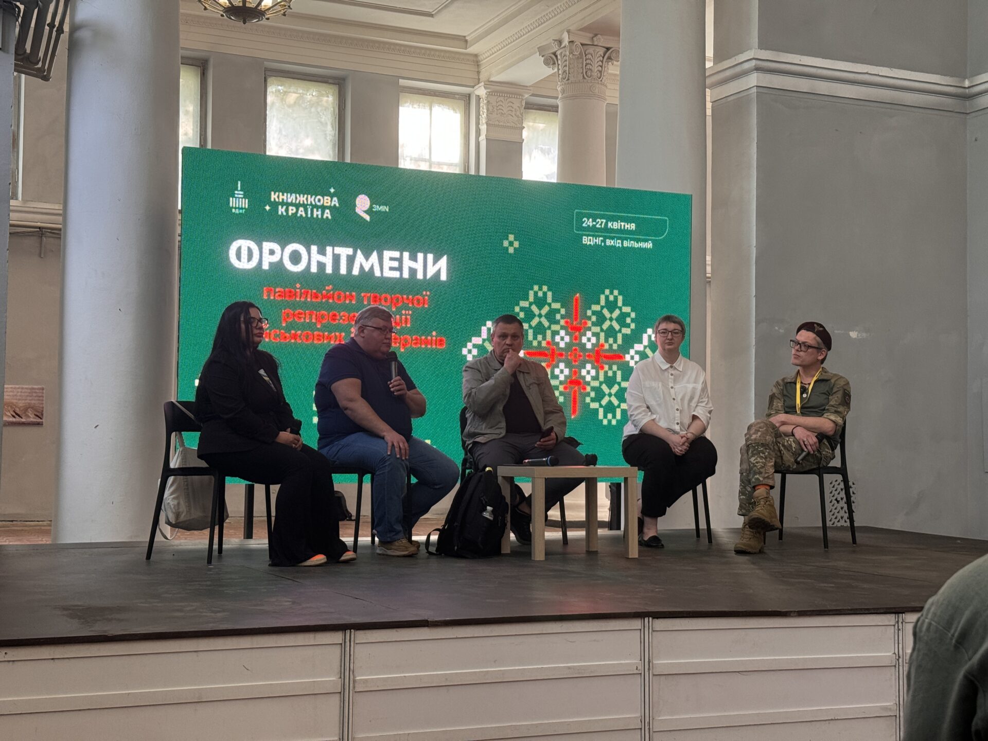 У межах програми #ФРОНТМЕНИ відбулися презентації очікуваних новинок: «Ціль припинила існування» Сергія Демчука, есеїв «Не народжені для війни» Артема Чапая, «Усе на три літери» Дмитра Крапивенка, антології мілітарної поезії від Видавництва 333 та розмова про письменництво як терапію. Видавництво «Білка» провело презентації книжки «Пташники» Дмитра Калинчука, а також розмову з Євгеном Спіріним, Олегом Гавришем та Андрієм Кириченком про письменництво як терапію.
