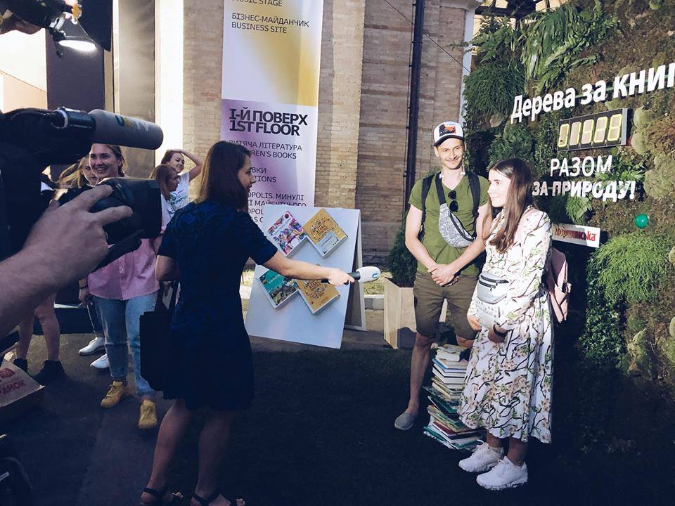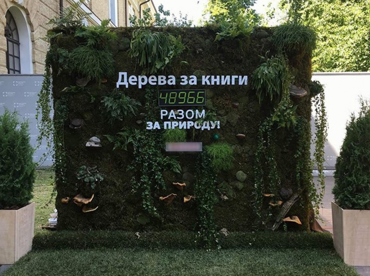 «Суть акції полягала у тому, що відвідувачі Книжкового Арсеналу купували будь-яку кількість книжок у будь-яких видавництв, підходили на виході з Арсеналу до фотозони «Моршинської», в яку було вмонтовано спеціальний лічильник та кнопка, на яку гості натискали стільки разів, скільки книжок придбали. Їх підрахував лічильник. Зупинився він на цифрі 48 996», – розповіла PR-manager агенції Gres Todorchuk, співорганізатор акції «Дерева за книги» Тетяна Максимова.