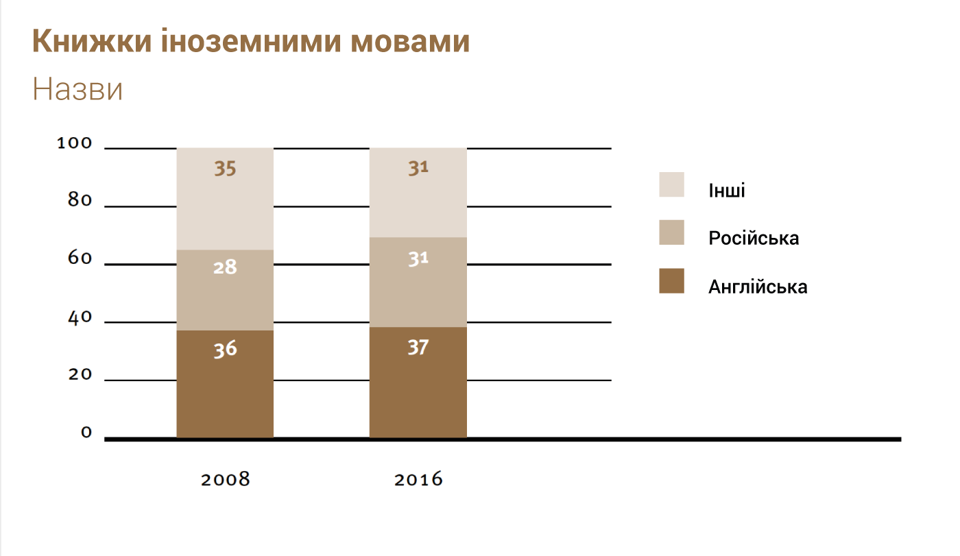 Перекладається небагато вітчизняної літератури, лише 3%.