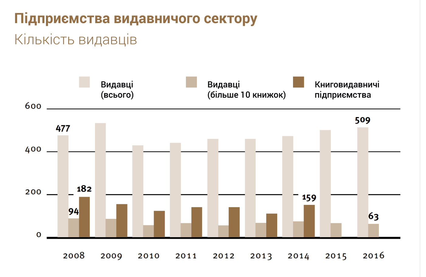 Великих і активних видавництв до 50, а зареєстрованих – 500. Є й монополісти: Alma Littera. Вони закупили всі мережі книгарень, забрали ринок підручників і видають близько 500 назв на рік.