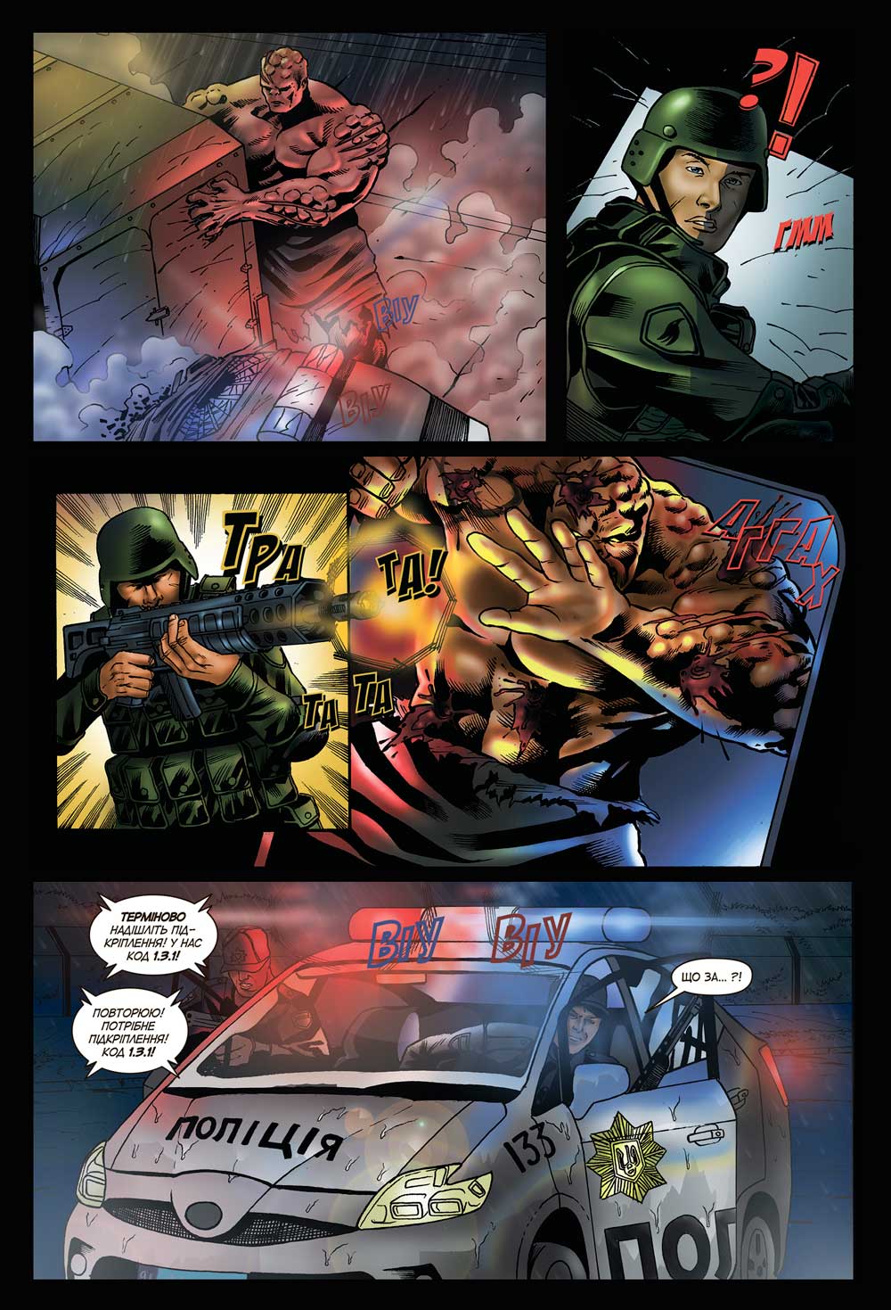 Зображення монстрів стало серйознішим, а метафори — похмурішими. На сторінках трапляються і катування, і розчавлені голови, і вирвані очі. Усе як у новинах, усе як у житті. Однак в історії все одно наявні елементи, притаманні першому тому, і вони різко дисонують із сюжетом і настроєм продовження (зокрема, сексуальна об’єктивізація жінок та аж надто дитячі жартики). А ось до однозначних плюсів варто зарахувати якість малюнку й роботу з кольором. «Патріот» Вадима Назарова за три випуски виріс у межах власної історії і зміг перевершити колег. Йому це вдалося, бо він ледь не єдиний наблизився до війни упритул. Та ще ближче підійти до лінії фронту зміг інший проект.