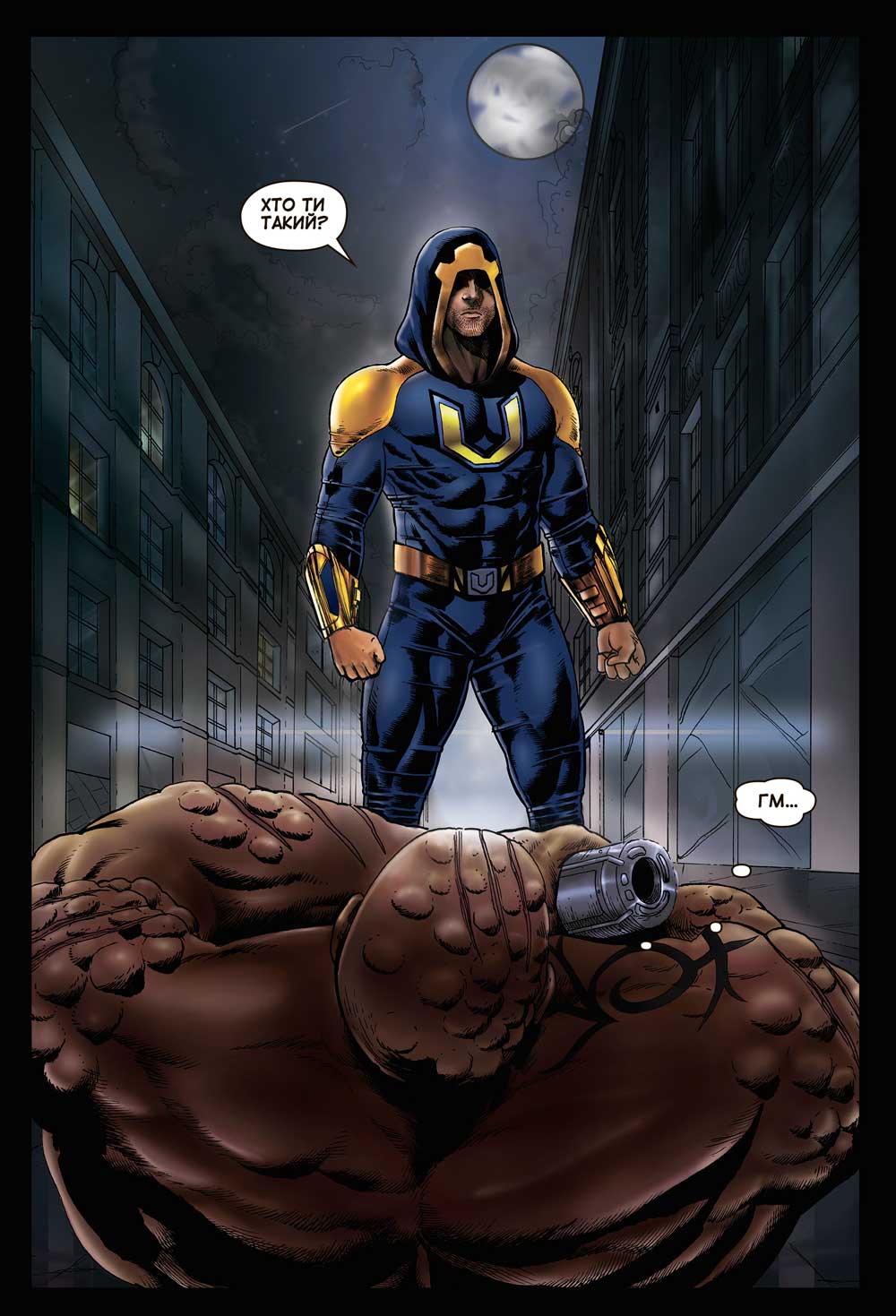 Козаки, звісно, — тренд крутий, але весь час прикриватися довгими вусами Максима Оси не вдасться. Потрібно щось нове. І проект від «Рідної мови» «Ukrman» авторства Федора Левченка й Анатолія Тягура на стадії анонсів видавався дуже цікавим. Яскрава ілюстрація, з якою їздили всіма презентаціями хоч і нагадувала трохи асасина із відомої французької гри, інтригувала. Була надія, що цю подібність якось іронічно обіграють. Особливо зважаючи на назву, що доводить до абсолюту ідею національного героя.