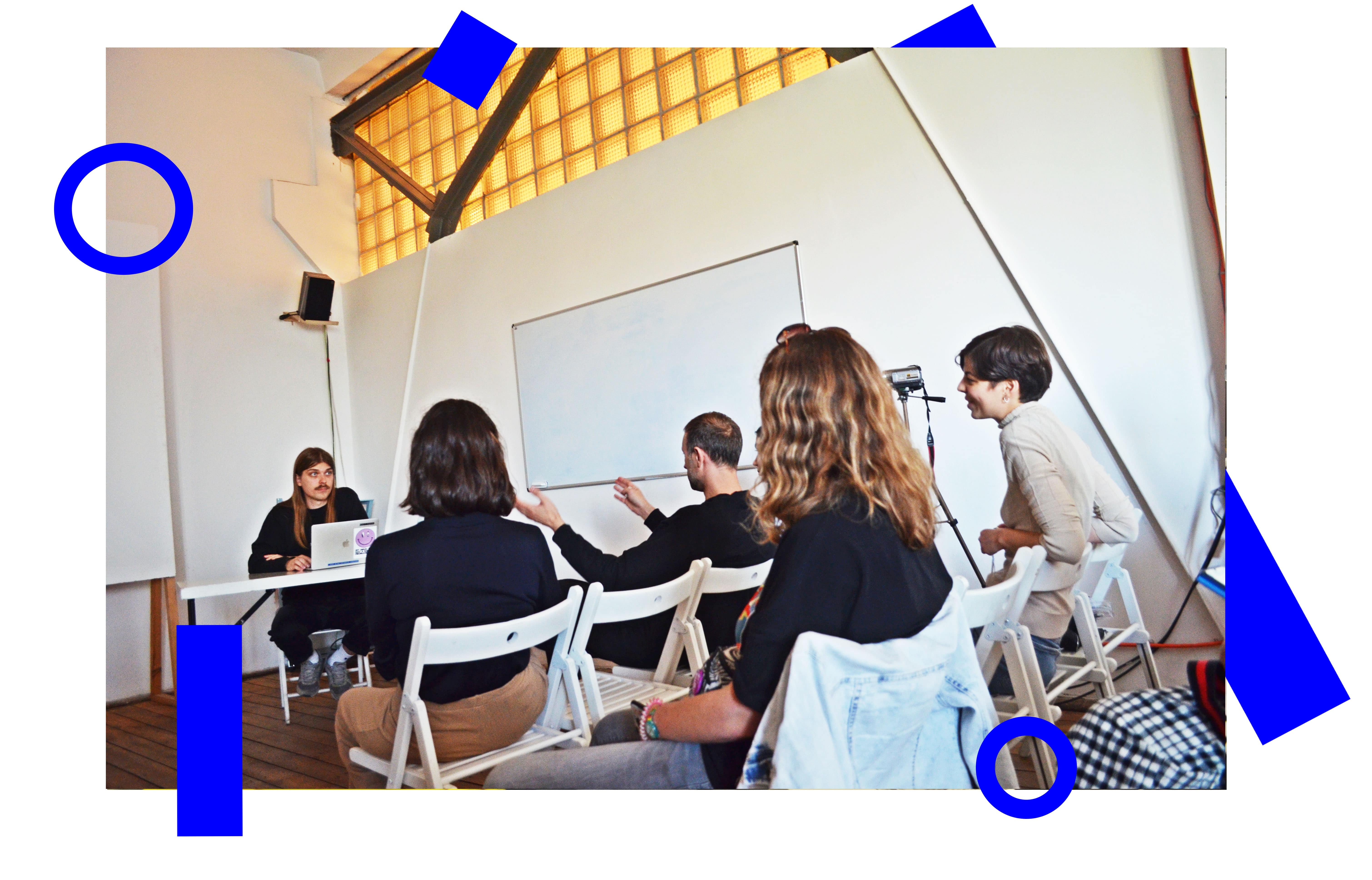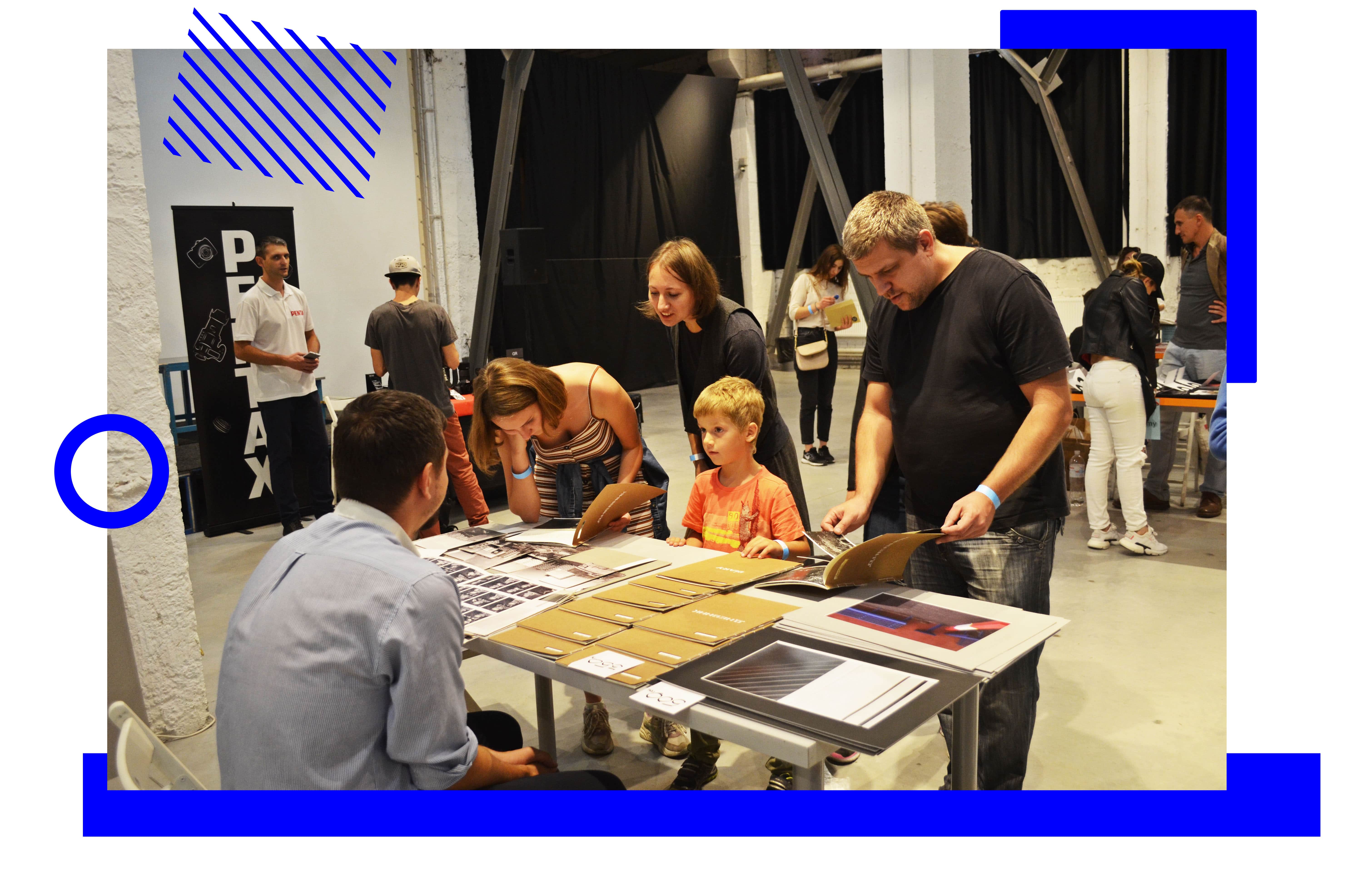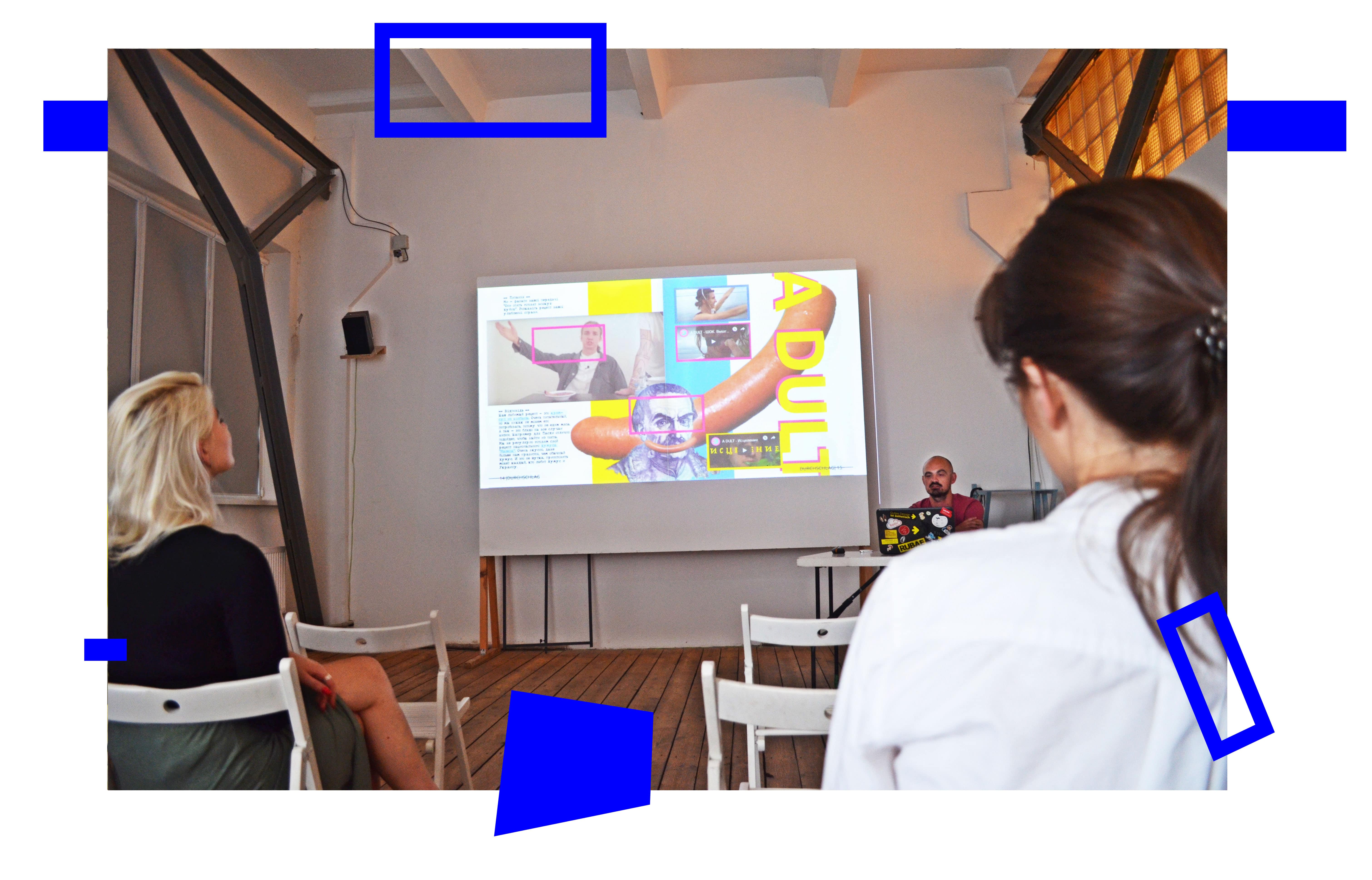 «У графічному дизайні я експериментую з 3D-дизайном, який можна використати й на площині», ― розповідає дизайнер Саша Биченко, гортаючи слайди з афішами та інформаційним стендом щодо створення музейного комплексу на території Бабиного Яру. На своїй лекції керівник Українського конкурсу макетів фотокниг Ukrainian Dummy Award також доволі детально розповів, як йому працювалося з фотографами під час створення їхніх фотокниг, як разом відбирали світлини й намагалися з їхньою допомогою «розповісти» історію. Також Биченко підкреслив різницю між поняттями альбом, каталог, монографія, візуальна книга, артіст-бук, зін, даммі та фотокнига, адже їх часто плутають.