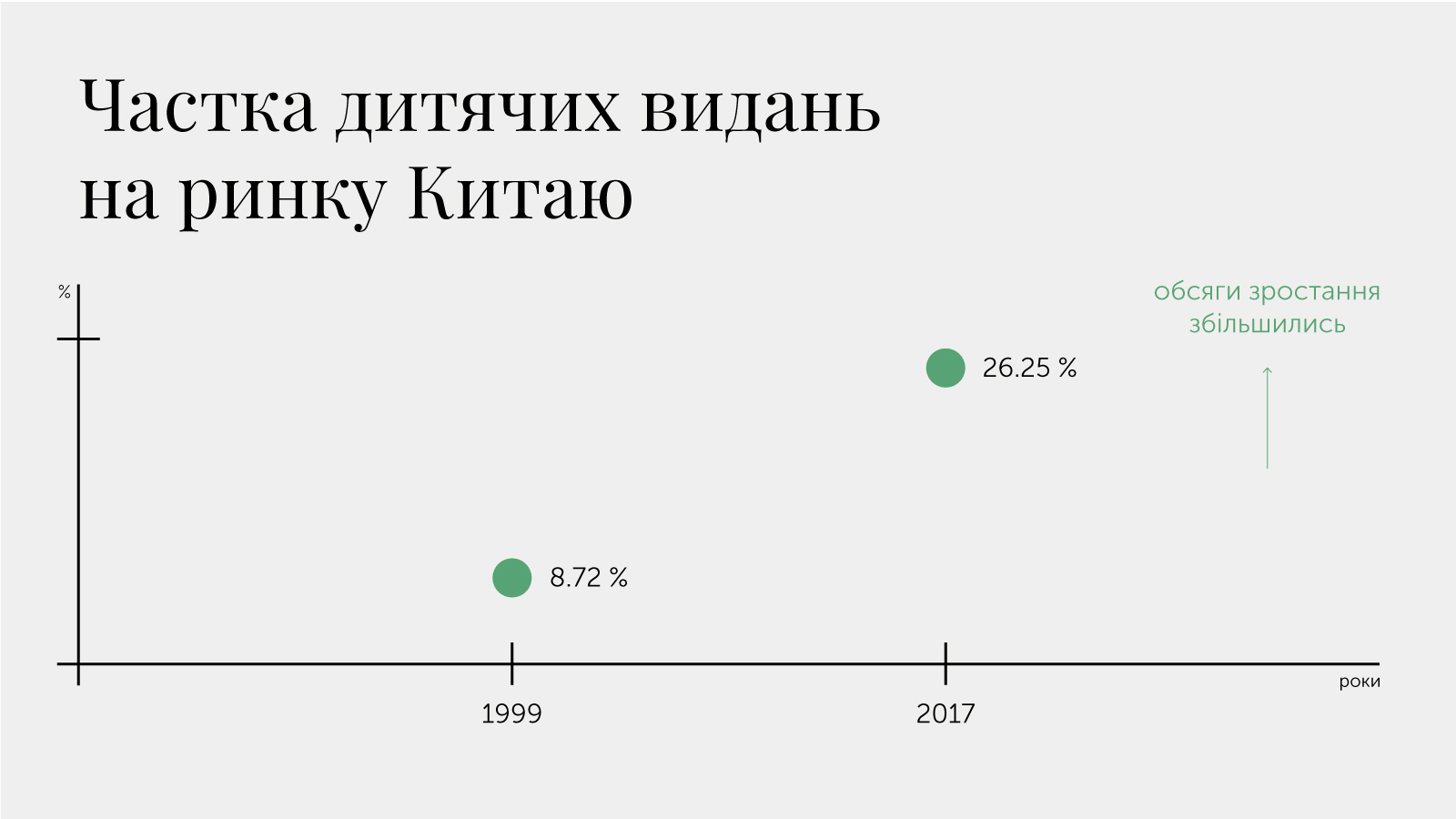 У першій половині 2018 року обсяги продажів дитячих книжок у Китаї зросли на 14,47% у порівнянні з минулим роком, але сам минулорічний показник зростання був вищим – 21,8%.