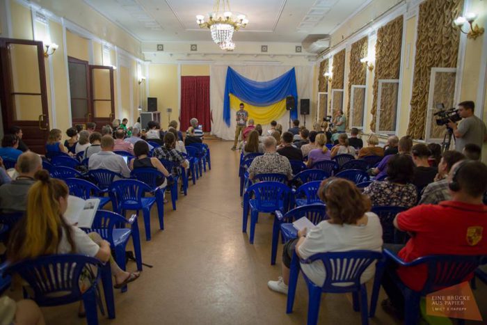 Мабуть, Маріуполь став четвертим і найскладнішим містом для літературного проекту «Міст із паперу». Побудувати хиткі, метафоричні мости літературного світу у місті з заводами-гігантами, що розтягнулися на сотні кілометрів, з жителями, з яких близько 50 тисяч працюють на цих заводах, з важким, отруєним повітрям, за 20 км від фронту, не так легко. Але Верені Нольте, директорці об’єднання «Kulturallmende», вдалося втілити кураторську програму, яку можна назвати зразковою у літературному сегменті.