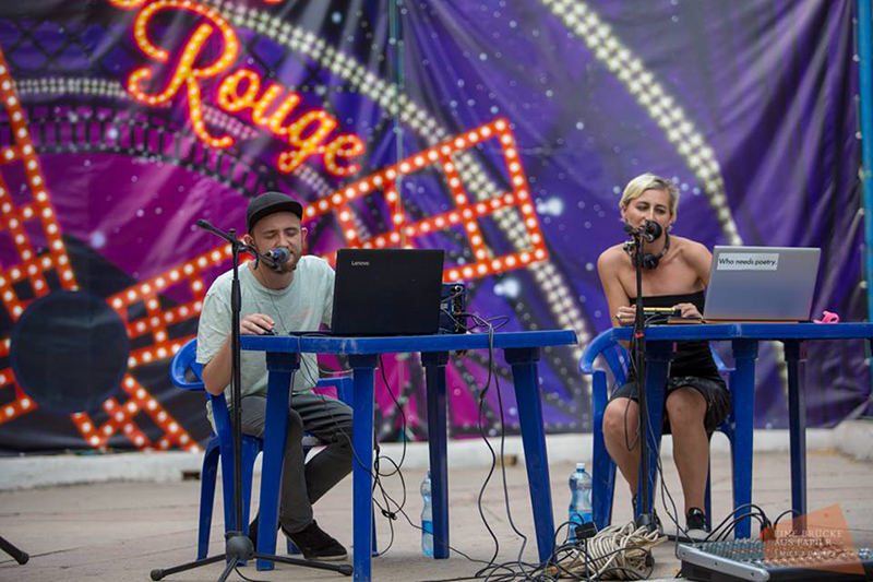 За кілька хвилин після бардів і виступів місцевих літераторів має відбутися музично-поетичний проект Ульріке Альмут Зандіґ і Григорія Семенчука. Дует вже спрацьований, досить відомий і на фестивалях Львова і Києва, експериментальний і такий, що потребує підготовлених відвідувачів.