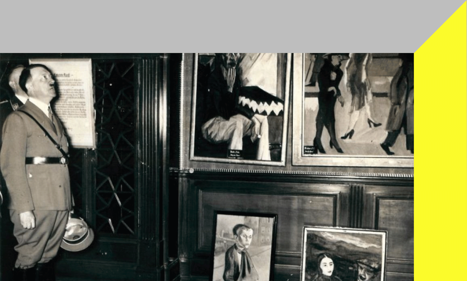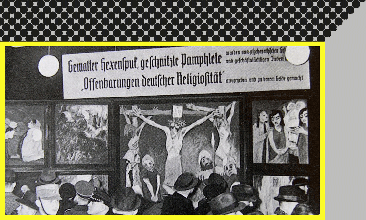Перша зала зорґанізованої нацистами виставки деґенеративного мистецтва якраз була присвячена «творам, що принижують реліґію», друга – «творам, створеними євреями», а третя – «творам, що ображають німецьких солдатів, жінок і фермерів».