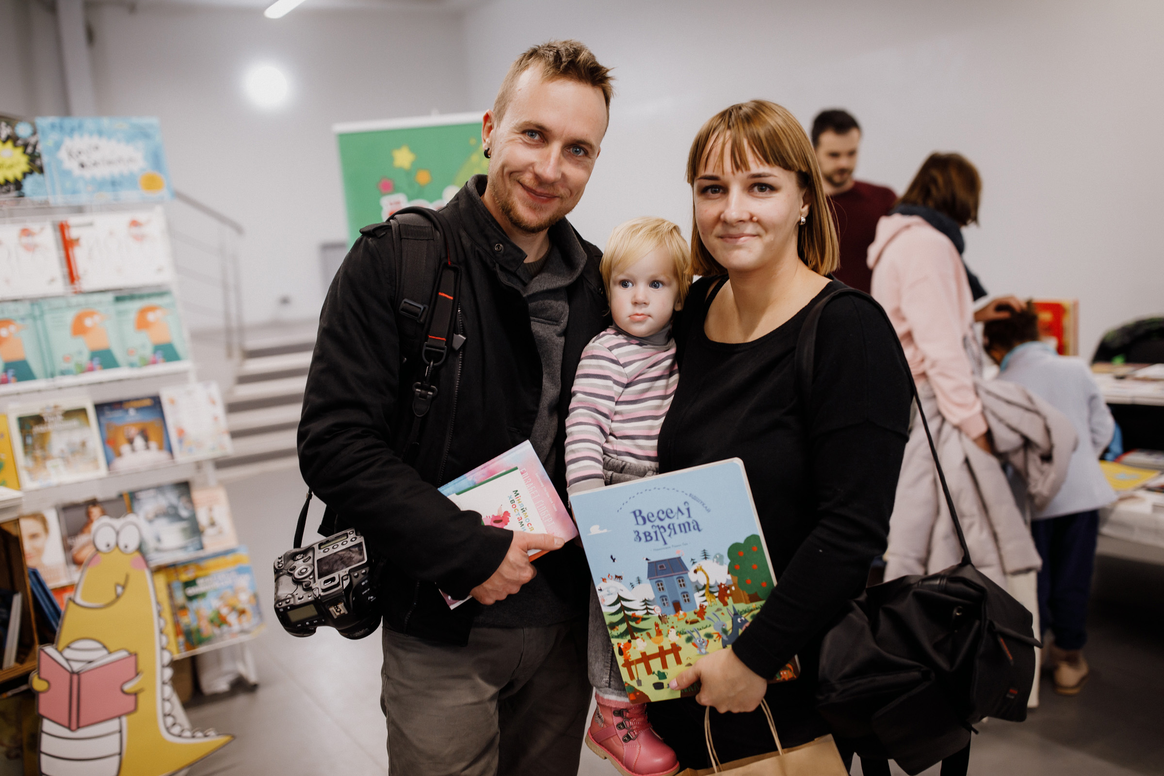 Я собі купила книжку, яку ще не читала – Гілберт. Я взагалі філолог за фахом, тому без читання ніяк. Тато в нас теж щось собі купив: «Як розмовляти з дітьми про мистецтво», він фотограф. Дитині ми купили віммельбух про тварин і маленька книжечка: там складати половинки треба – така книжка-гра. Я їй намагаюся щось читати, але поки не хоче ще слухати. Любить розглядати та книжечки з рухомими елементами: відірвати, розібрати, зняти палітурку. Тому ми купуємо щось із оченятами, дірками, віконцями – інтерактивне.