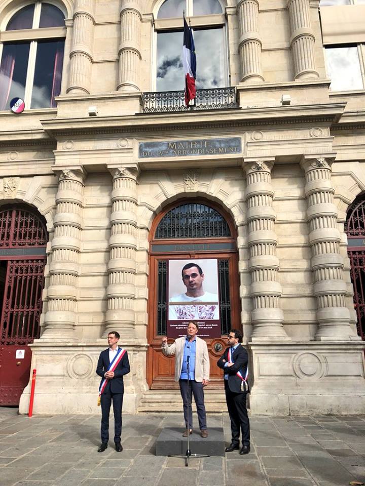 На фасаді мерії 4-го округу Парижа вивісили портрет Олега Сенцова. Про це повідомляється на Facebook-сторінці Save Oleg Sentsov.