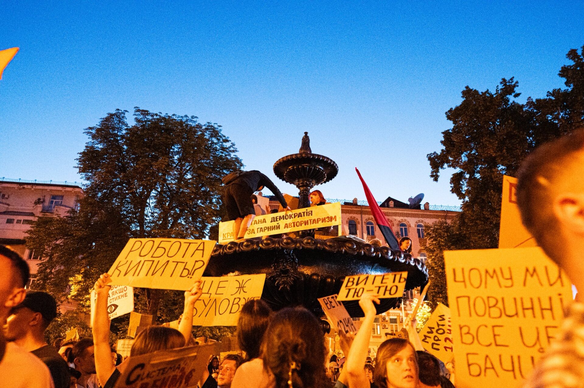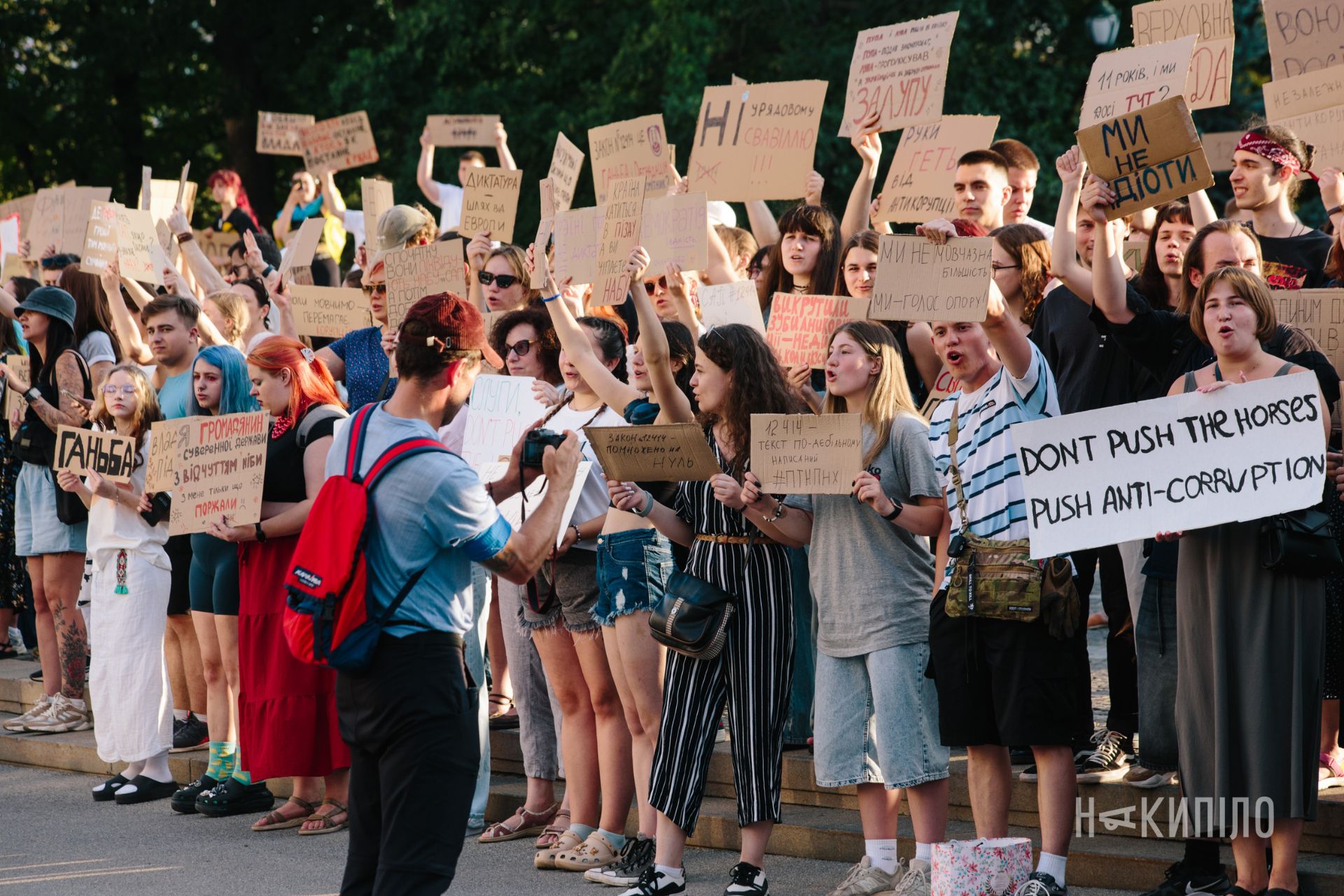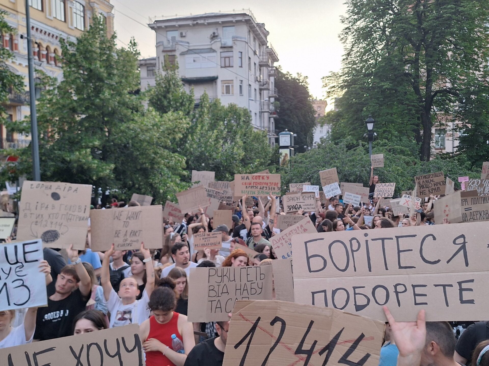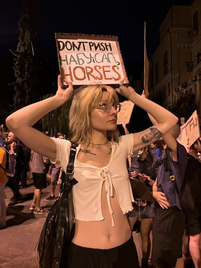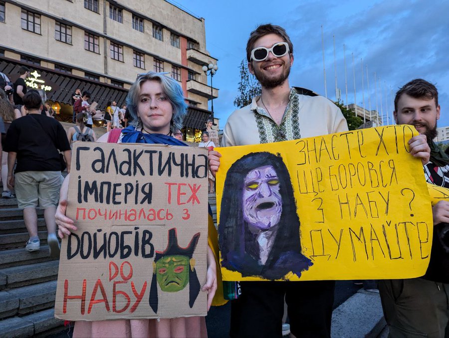 Із 22 липня в столиці і низці міст України тривають протести небайдужих громадян проти закону 12414, що передбачає підпорядкування Національного антикорупційного бюро (НАБУ) та Спеціалізованої антикорупційної прокуратури Генпрокураторі і підриває їхню незалежність.