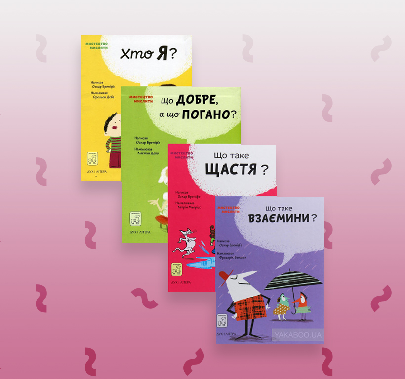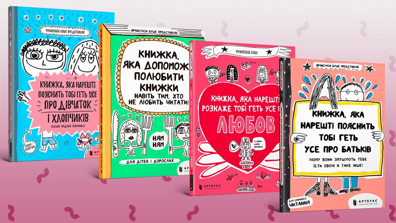 Назви книжок говорять самі за себе. «Книжка, яка нарешті пояснить тобі геть усе про батьків», «Книжка, яка нарешті пояснить тобі геть усе про дівчаток і хлопчиків», «Книжка, яка допоможе полюбити книжки навіть тим, хто не любить читати» та «Книжка, яка нарешті розкаже тобі геть усе про любов» доступною дітям мовою пояснюють світ навколо, навчають краще його розуміти, взаємодіяти з батьками та друзями.