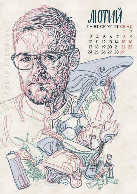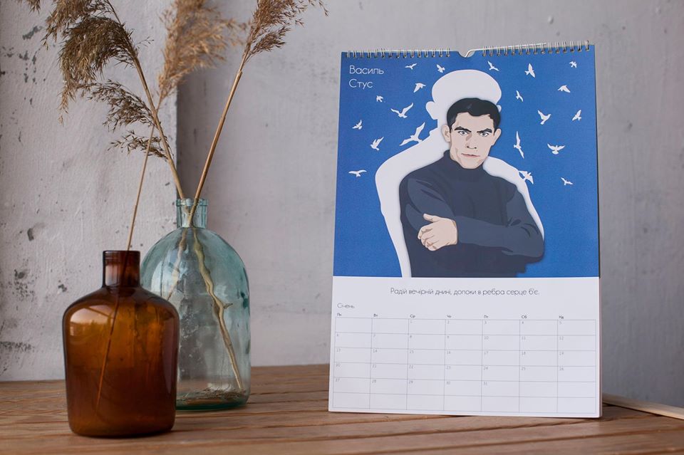Ще один календар, присвячений українським письменникам та письменницям. Серед героїв – Ліна Костенко Сергій Жадан, Юрко Іздрик, Марк Лівін тощо. Авторка календаря — Ольга Бодня.