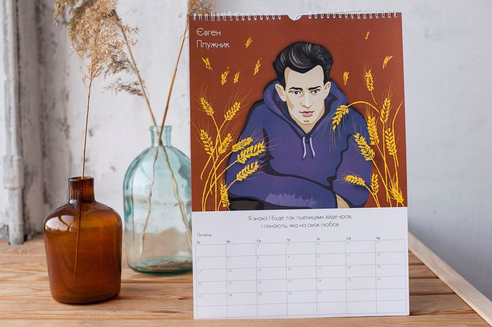 Календар 2020 року – це перша робота проєкту «ЇS-Shop», який має на меті створювати речі, що руйнують стереотипи навколо українського мистецтва. Автори проєкту – Саша Шевченко, Сергій Биков та ілюстраторка Ната Сорока. Вони зазначають, їхня ідея – це показати знаних і досі невідомих письменників інакшими, цікавими, нетривіальними. Місяці календаря присвячені 6 письменникам та 6 письменницям: Василю Стусу, Ользі Кобилянській, Василю Симоненку, Лесі Українці, Валер’яну Підмогильному, Олені Телізі, Євгенові Плужнику, Марку Вовчку, Майку Йогансену, Олені Пчілці, Валер’яну Поліщуку та Наталі Кобринській. Крім ілюстрації, на календарі є цитата автора чи авторки та сітка днів, де можна вписувати свої важливі дати та плани.