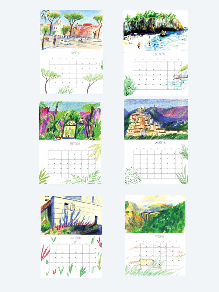 Ілюстраторка Оксана Драчковниця до 2020 року створила ілюстрований календар із краєвидами Південної Італії та Південної Іспанії. Як зазначає авторка, у календарі – багато сонця, моря, тепла, гір і зелені. Формат – АЗ, але можна замовити й в інших розмірах.