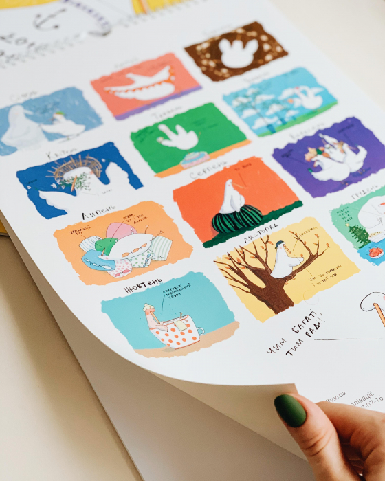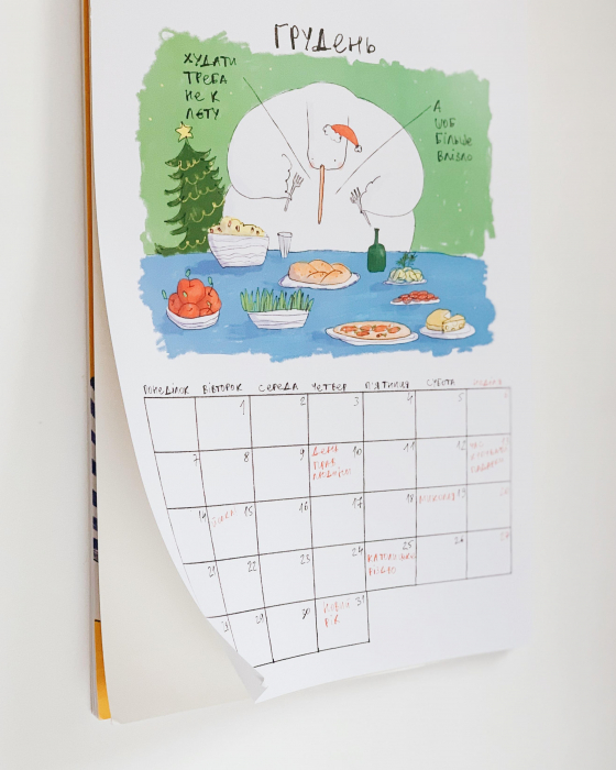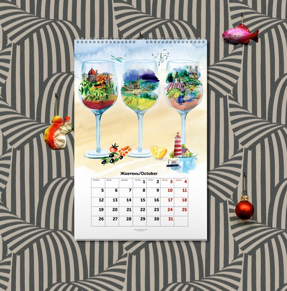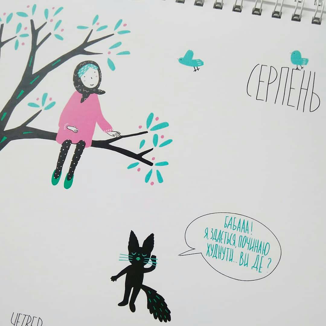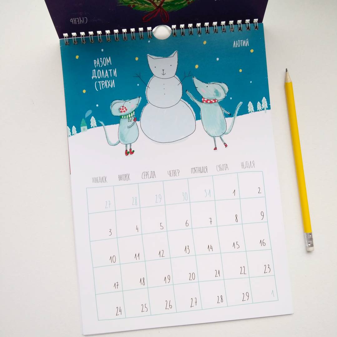 Календар ілюструвала Альона Жук. Календар настінний, формату А3, виконаний на крейдованому матовому папері.