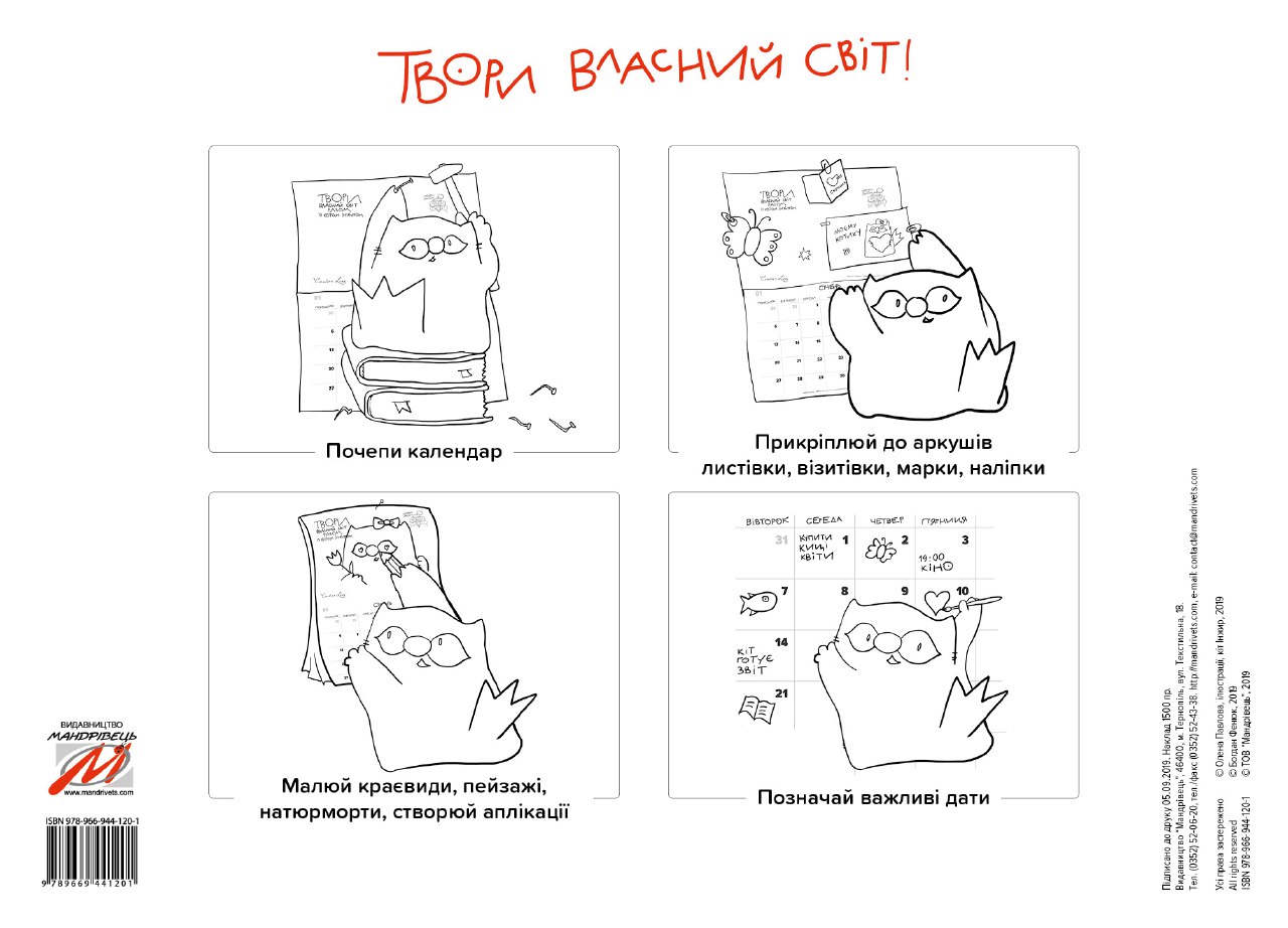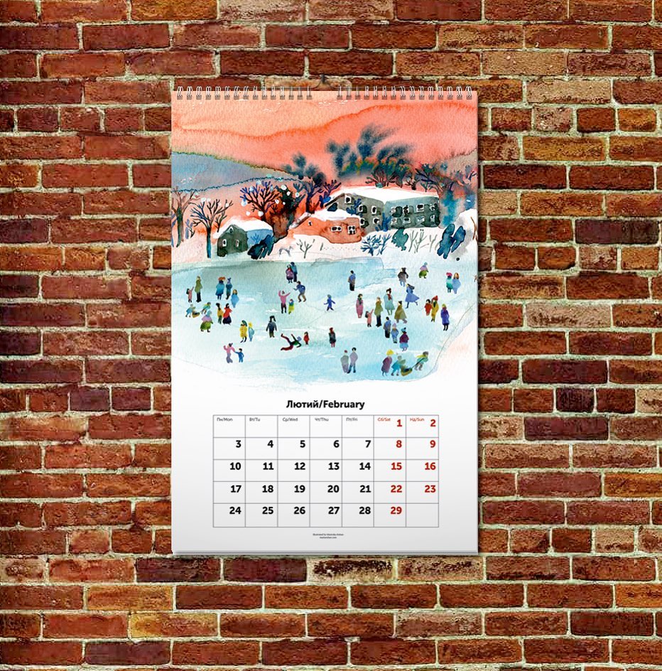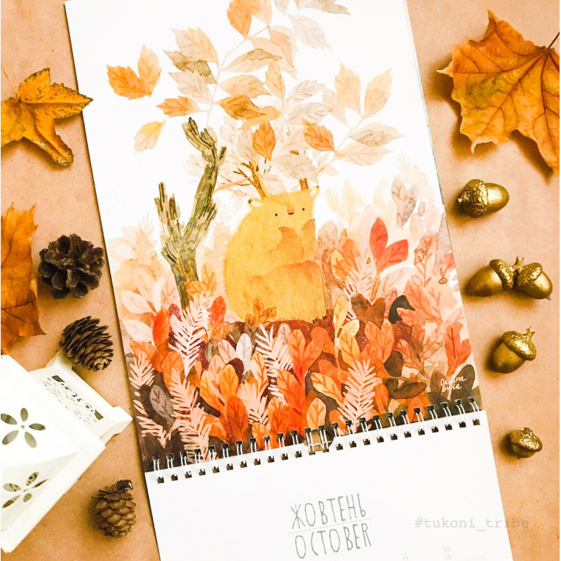 Ілюстрації харківської художниці Марічки Рубан унікальні тим, що вона використовує акварельні фарби. Саме зображення у такій техніці прикрашають її календар на 2020 рік. Календар настінний, формату А3, з великими красивими ілюстраціями та місцем для нотаток й планів.