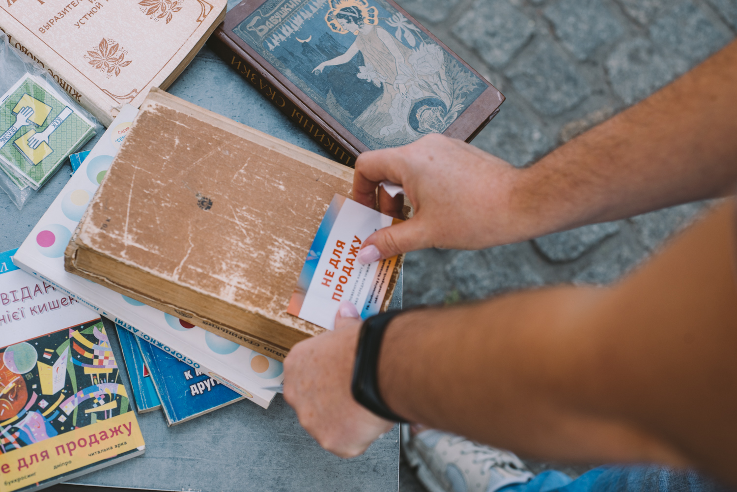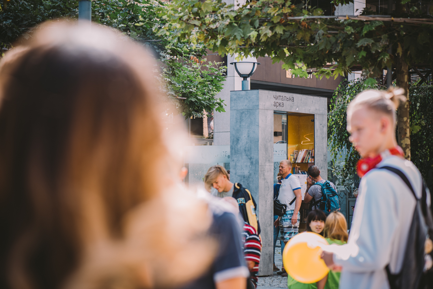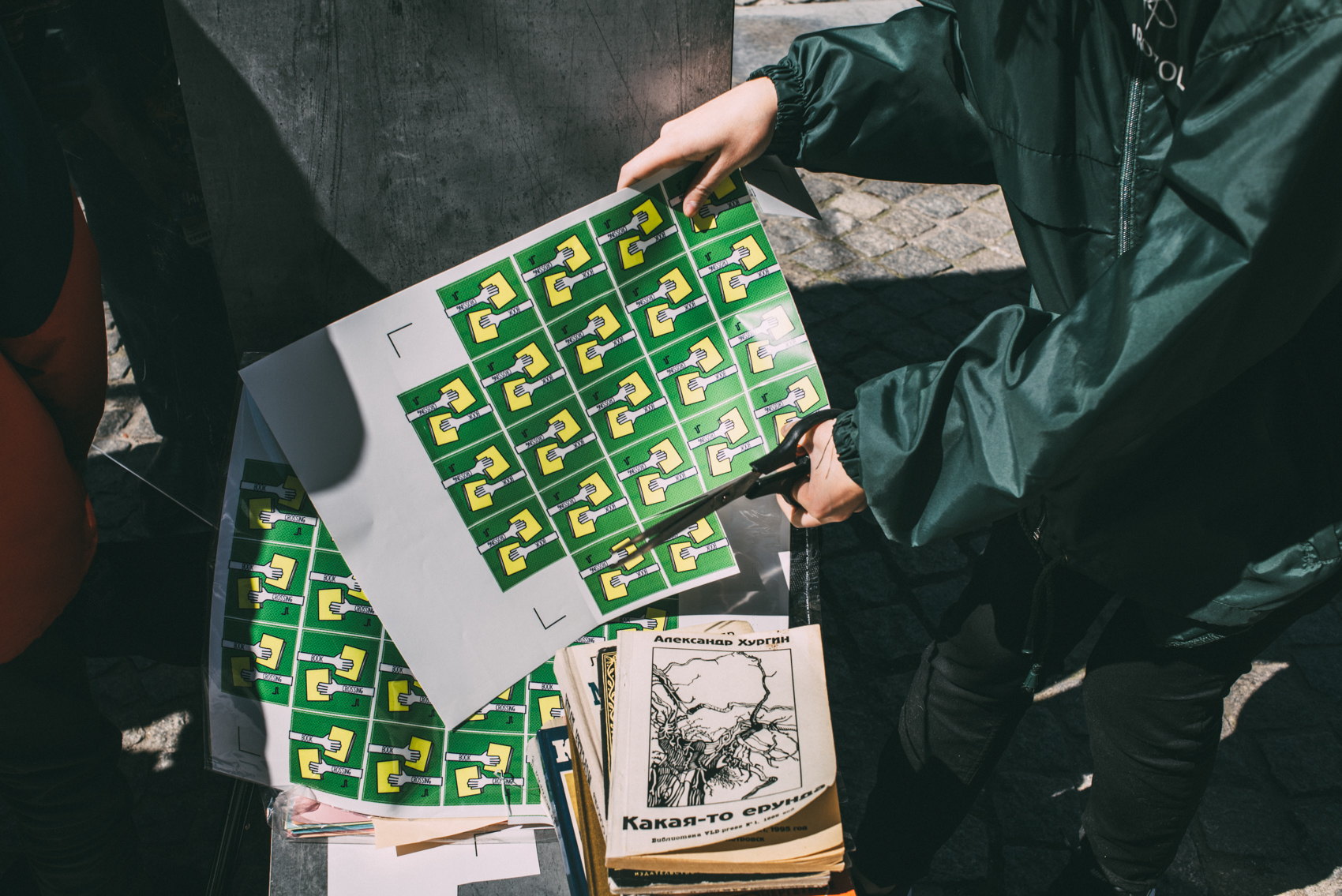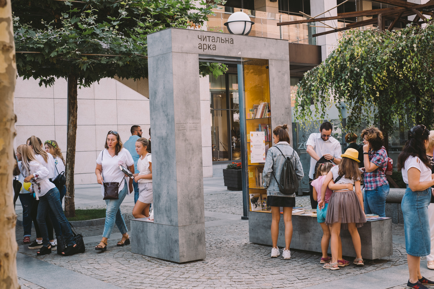 Жива акція обміну книжками біля Читальної арки; захисні стікери