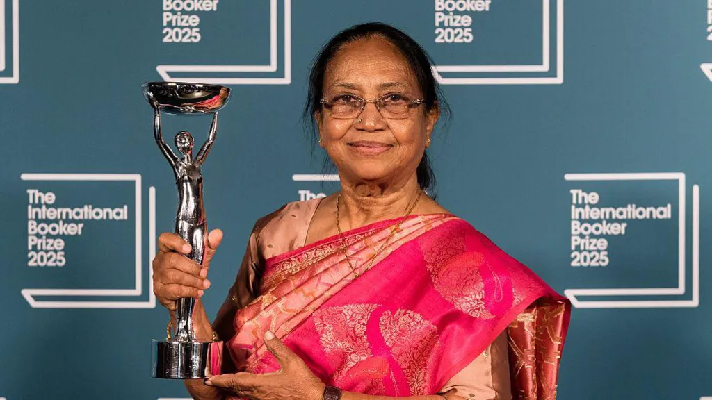 Роман Гітанджалі Шрі став першим твором, написаним мовою гінді, який отримав Міжнародну Букерівську премію. Авторка книжки й перекладачка Дейзі Рокуелл розділять приз у 50 000 британських фунтів.