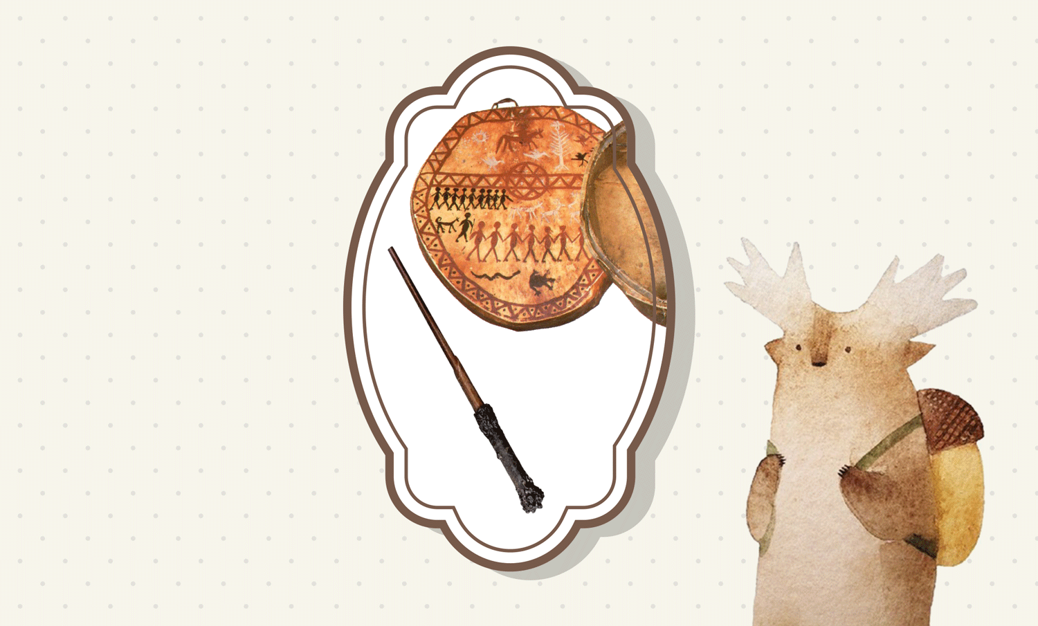 Тільки, на відміну від туконі, чарівні палички відстежують свій рід від шаманського бубна. Шамани, як і кожен чарівник зі світу Роулінг, черпає свою магічну силу саме зі священного дерева. Багато шаманів у своїх практиках послуговуються бубном. Якщо не вдаватися в деталі, це та магічна річ, яка допомагала здійснювати їм свої дивовижні шаманські практики, а саме переміщатися між світом людей і світом богів та світом мертвих – лазити, як горезвісний Джек, світовим деревом. І на цьому самому бубні часто стоїть зображення світового дерева. Тож можна припустити, бубон є магічним, бо зроблений із деревини світового дерева.
