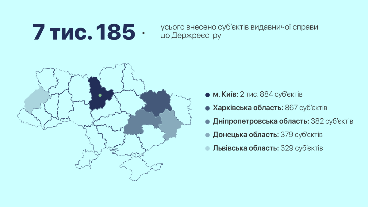 Усього до Держреєстру внесено 7 тис. 185 суб’єктів видавничої справи.