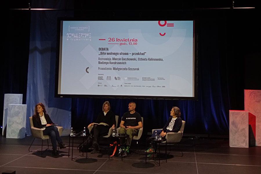 Наступного дня заключною подією фестивалю стає розмова від польського ПЕН-клубу, що має назву «Сила вільного слова — переклад». У ній беруть участь уже згадуваний тут Марцін Ґачковський, білоруська перекладачка та видавчиня, а також перекладачка з німецької. Отже, Україна в контексті війни, Білорусь в контексті режиму, Німеччина в контексті еміграції. Те, що це надзвичайно різні історії, які важко поєднуються, заслуговує на окремий аналіз, але для нас тут важливо інше.