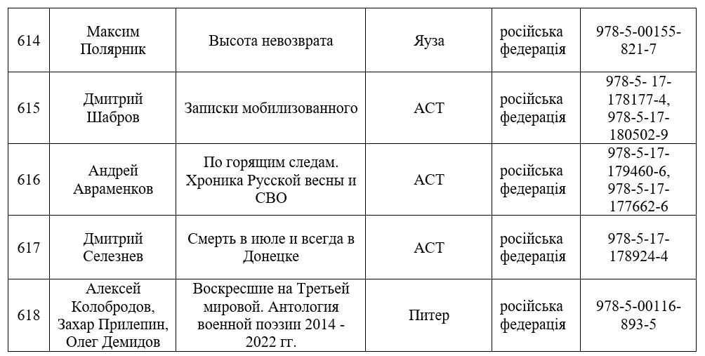 У Переліку видань антиукраїнського змісту уже 618 книжок з росії, білорусі й окупованих територій України. Про це повідомили на сайті Державного комітету телебачення і радіомовлення, що веде цей перелік.
