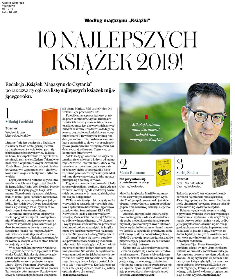 Gazeta Wyborcza включила польський переклад роману Сергія Жадана “Інтернат” до десятки найкращих видань 2019 року.
