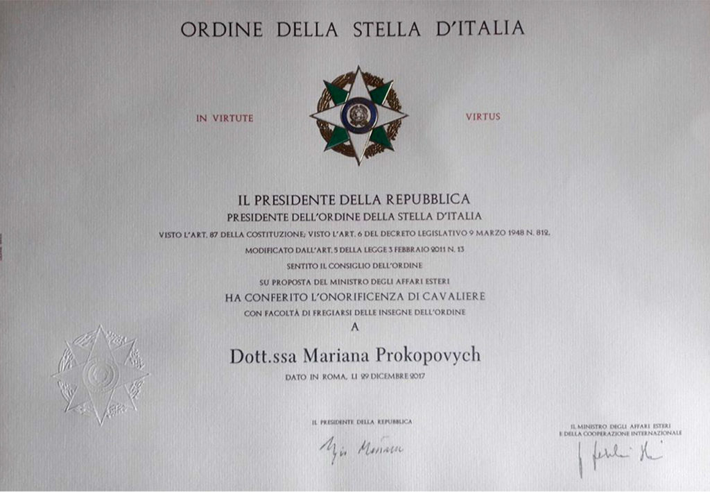 Українська перекладачка Мар’яна Прокопович стала Кавалером Ордена Зірки Італії.