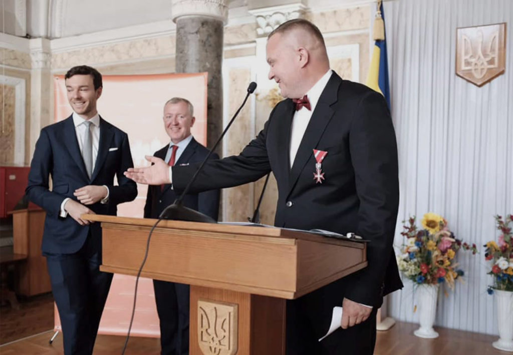 Нагородили українського видавця срібним орденом «За науку і мистецтво». Нагороду вручив перший секретар Посольства Австрії в Україні Флоріан Кольфюрст.