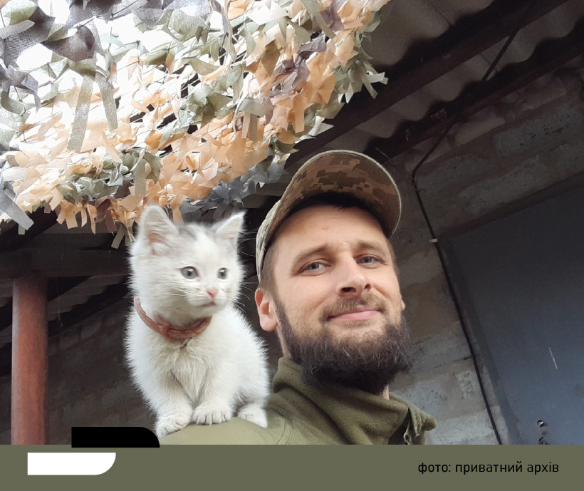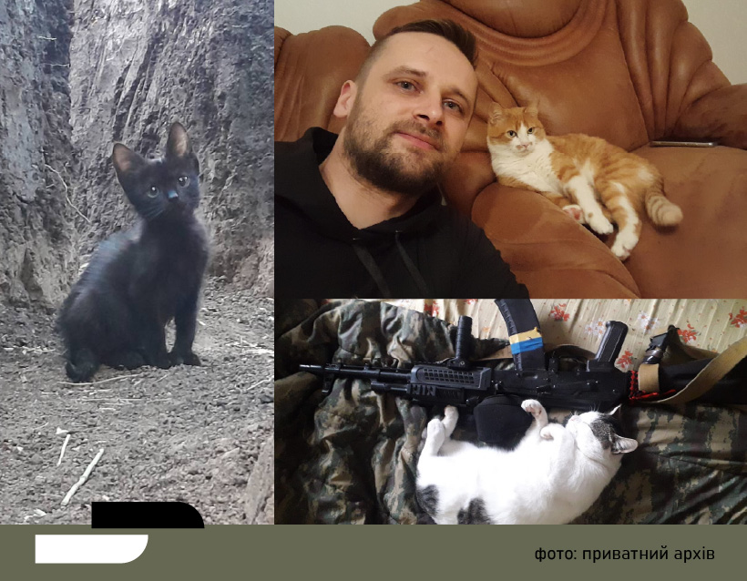 — Я дуже люблю котів. І де б ми не були — вони завжди тягнуться до військових. А до мене — особливо. Здається, якби я просто зібрав усі фото з котами, яких зустрів за ці три роки — вийшов би цілий альбом. Цю кицю звати Клякса або Ніндзя. Вона народилась на позиціях, а я вивіз її звідти в рюкзаку. Вона повністю чорна.
