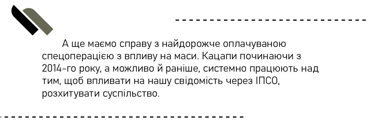— На той момент мені було трохи більше як двадцять років, але я вже чітко розумів: кацапів не люблю, а вони — нас. У мене було базове, але ґрунтовне розуміння історії, і я бачив певні закономірності. Розумів, що московити не хочуть нас випускати зі свого імперського поля впливу — і саме в цьому корінь того, що відбувається.