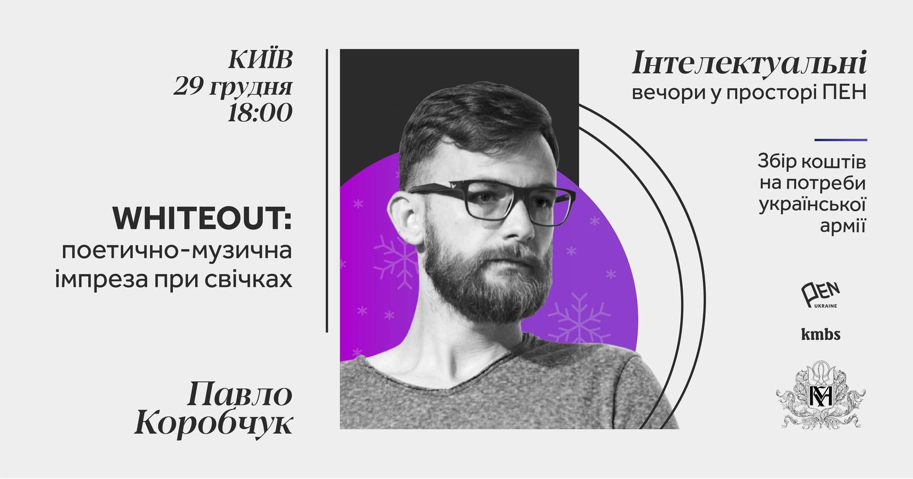 Під час поетично-музичної імпрези «Whiteout» Павло Коробчук вперше за 15 років публічно виконає власні пісні і презентує новий музичний альбом «Червонозем».