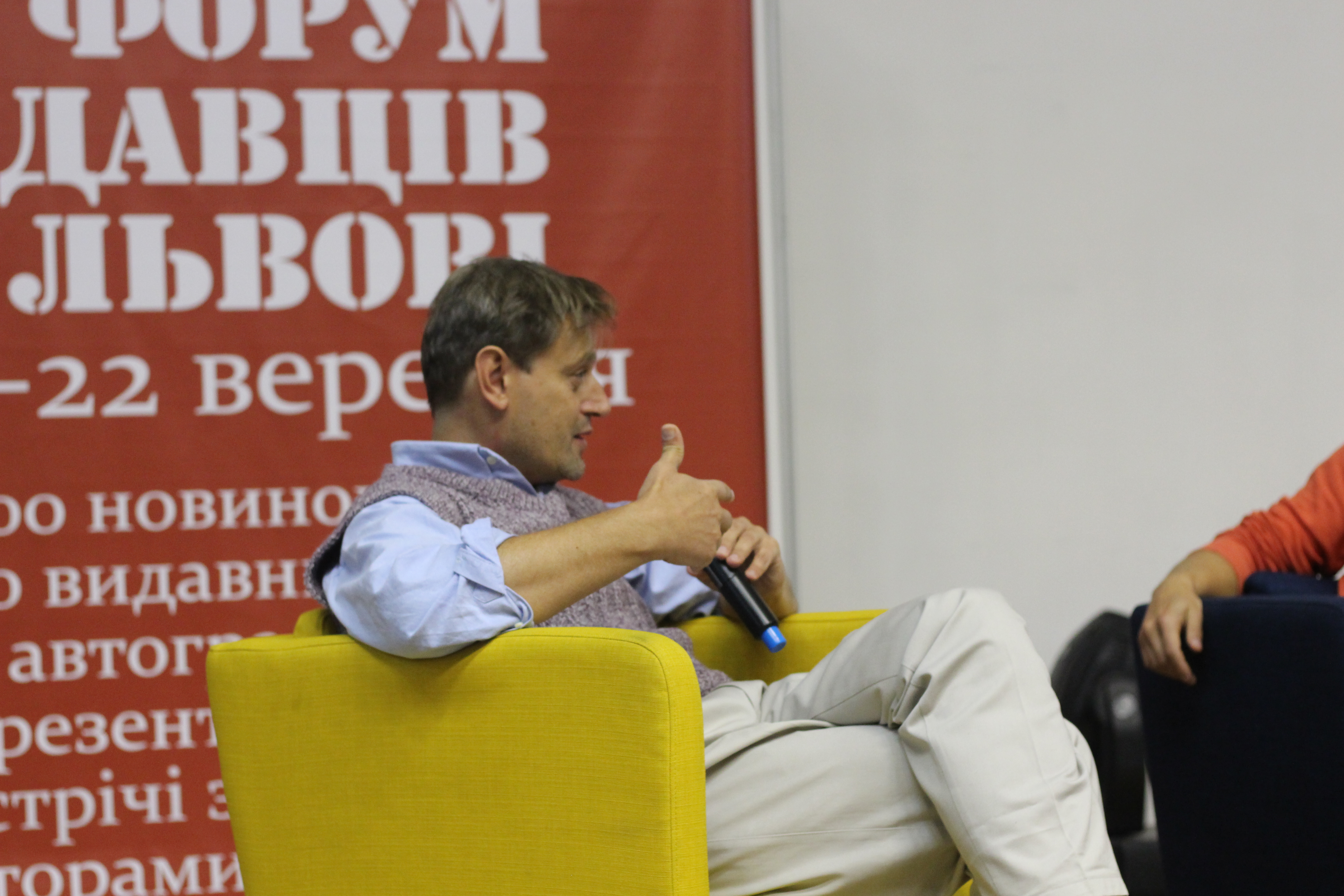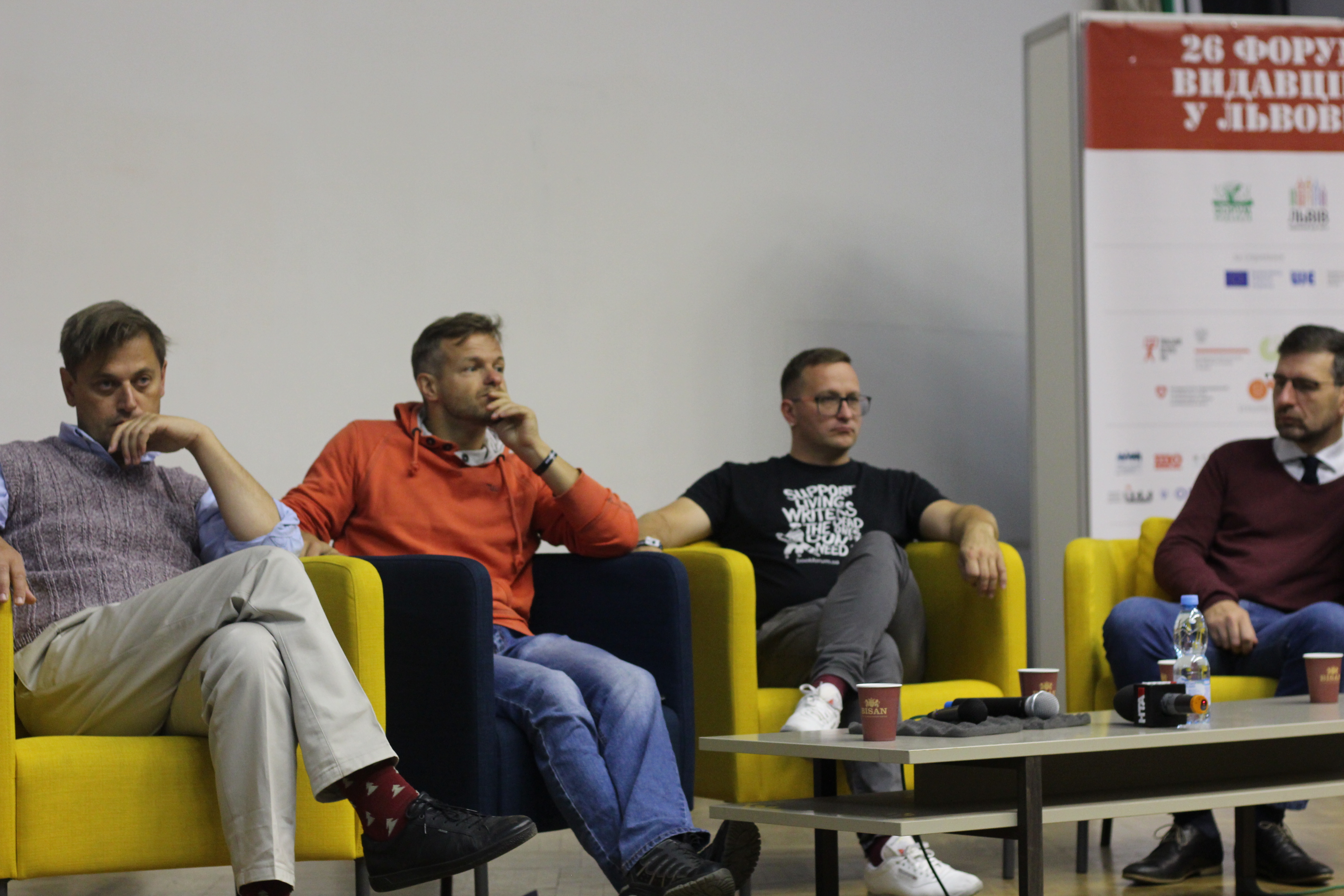 Українська суспільна думка часто виключає батька з простору батьківства, а догляд за дитиною стереотипно розглядає, як сферу відповідальності жінки. У межах Book Forum відбулася дискусія «Татопростір: відверта розмова про відповідальне татівство». На ній обговорювали стан татівства в Україні видавець та поет Юрій Завадський, журналіст і телеведучий Вадим Карп’як та перекладач і психоаналітик Юрко Прохасько. Модерував розмову письменник Артем Чапай, а організатором виступили фонд ООН у галузі народонаселення UNFPA та Посольство Швеції у Києві.