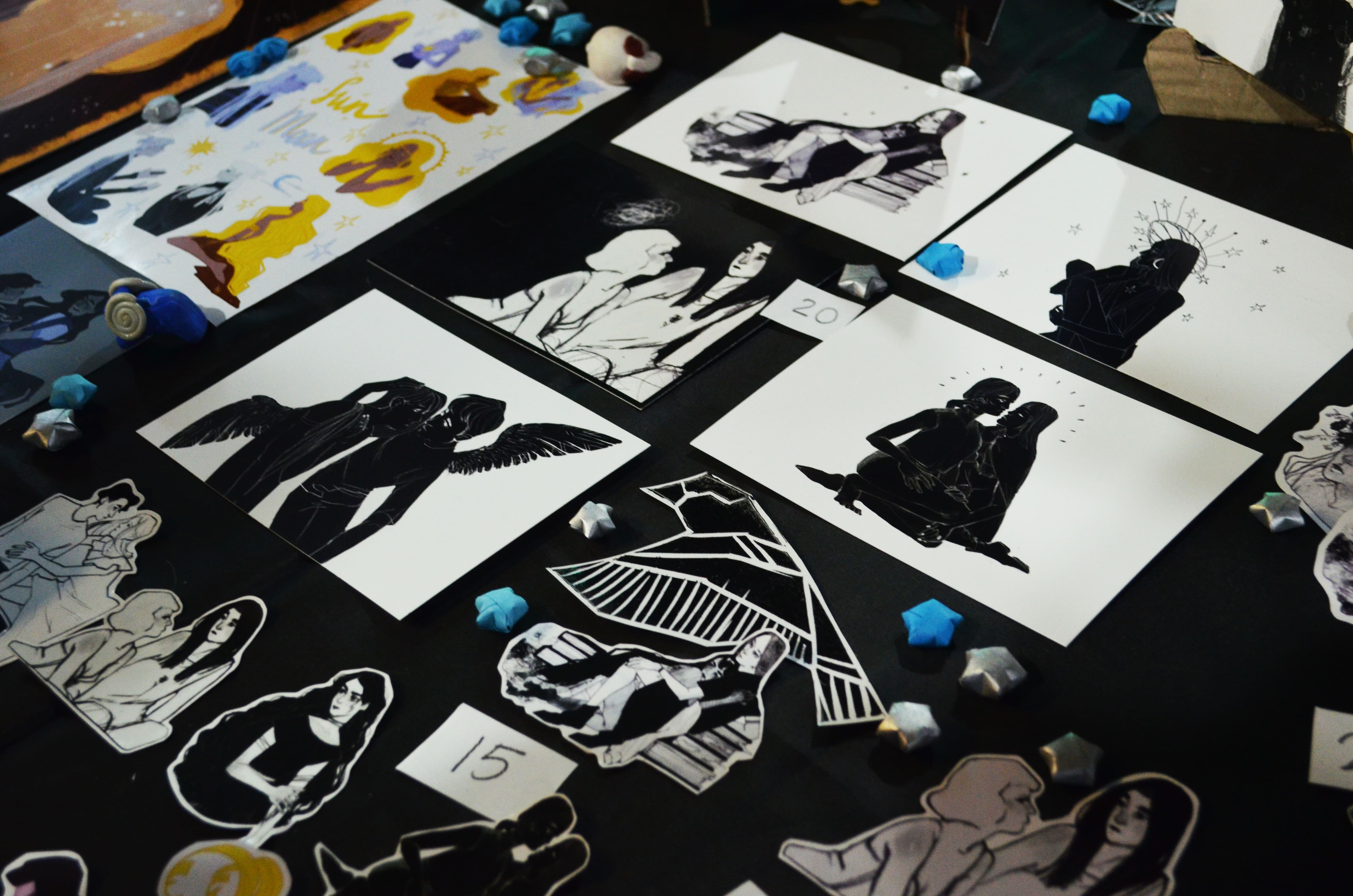 Цьогоріч на Алеї Художників фестивалю було ще більше добрих ілюстраторів із якісним артами. І це вже не тільки листівочки, а й всеможливих розмірів та дизайну стікери, закладки, значки, наклейки та чимало іншого. Багато ілюстраторів також мають на своїх розкладках і експериментальні чи дебютні комікси власного авторства, але не презентують їх із великої сцени.
