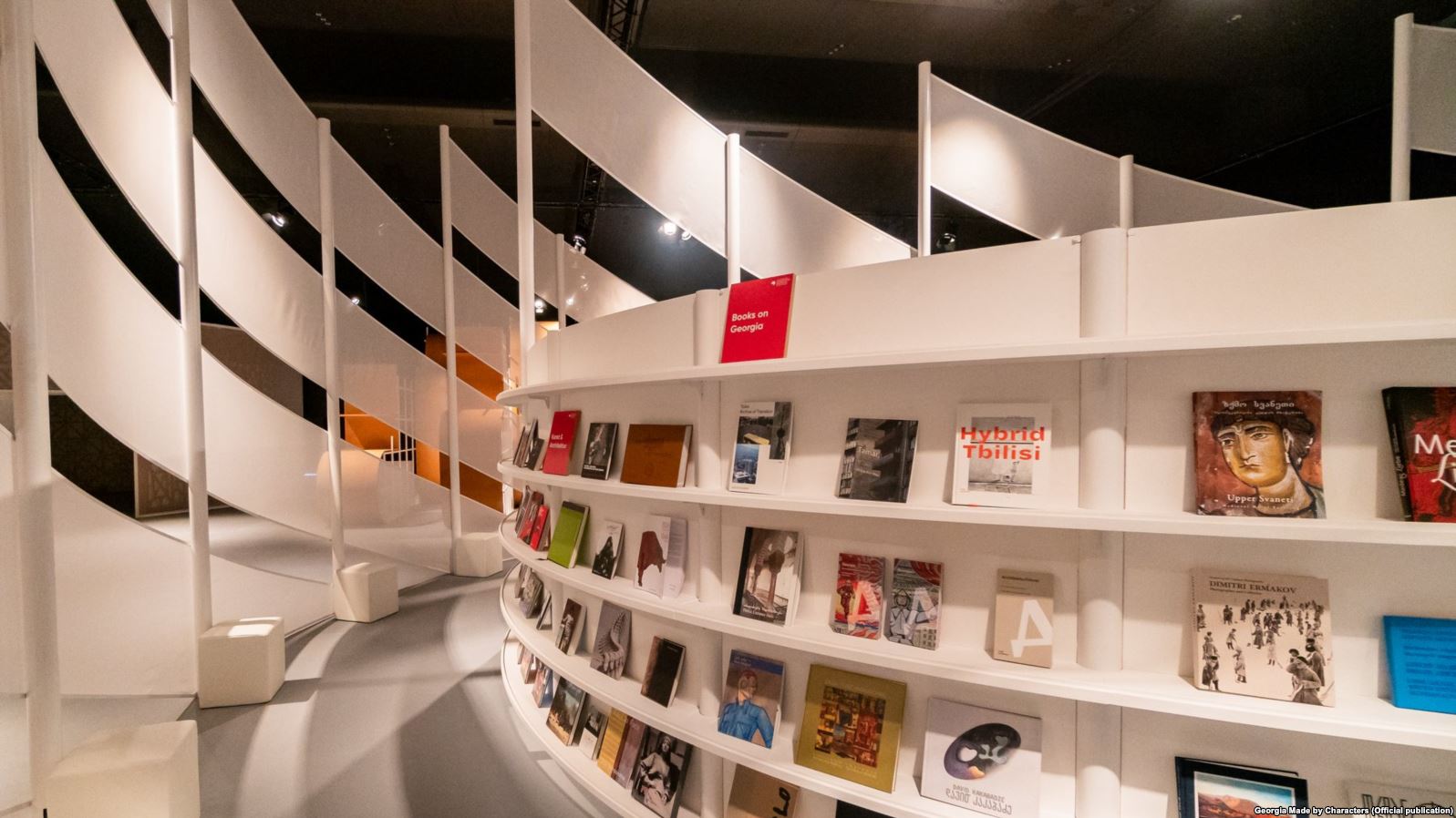 У просторі також виділили кілька активних точок взаємодії з відвідувачами: лабіринт із полицями для книжок різноманітної тематики (300 нові перекладні видання грузинської літератури, які були видані за підтримки Національного грузинського книжкового центру та ще 600 книжок — про Грузію, опубліковані іноземними видавцями різними мовами, а також мистецькі книжки грузинських видавництв та переклади авторів із Грузії іншими мовами.