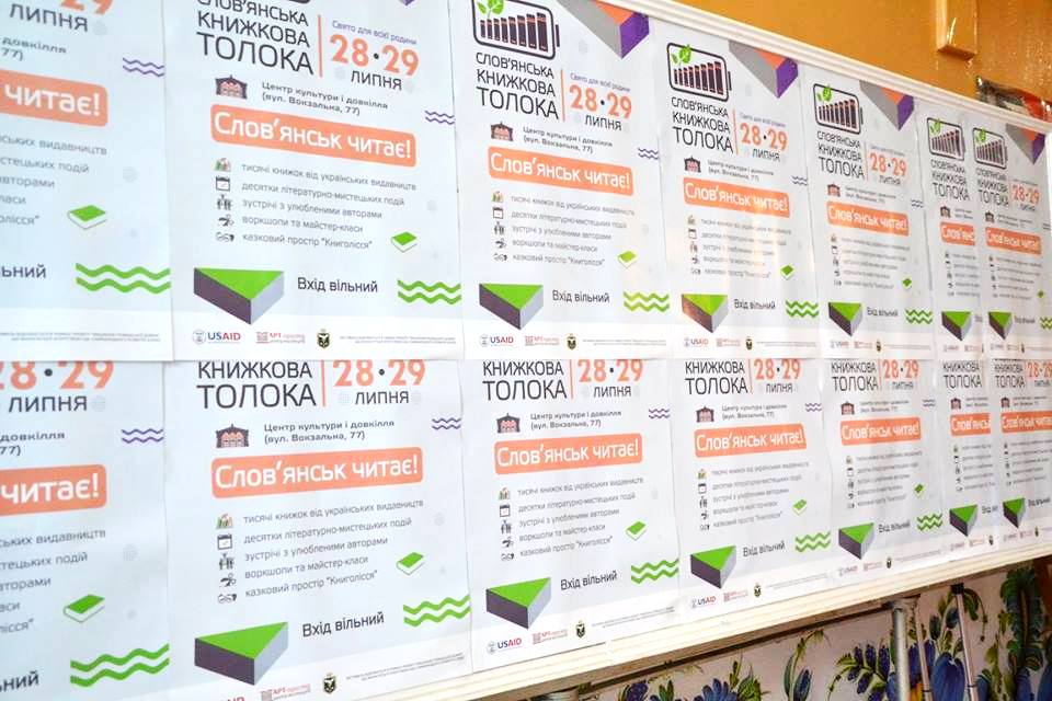 Нещодавно у «Центрі культури і довкілля м. Слов’янськ» відбувалася перша «Слов’янська книжкова толока», у якій взяли участь 15 видавництв і понад 100 митців. Фестиваль організували ГО «Центр мистецтв «Арт-простір» спільно з місцевими активістами й волонтерами за підтримки Агентства США з міжнародного розвитку USAID.