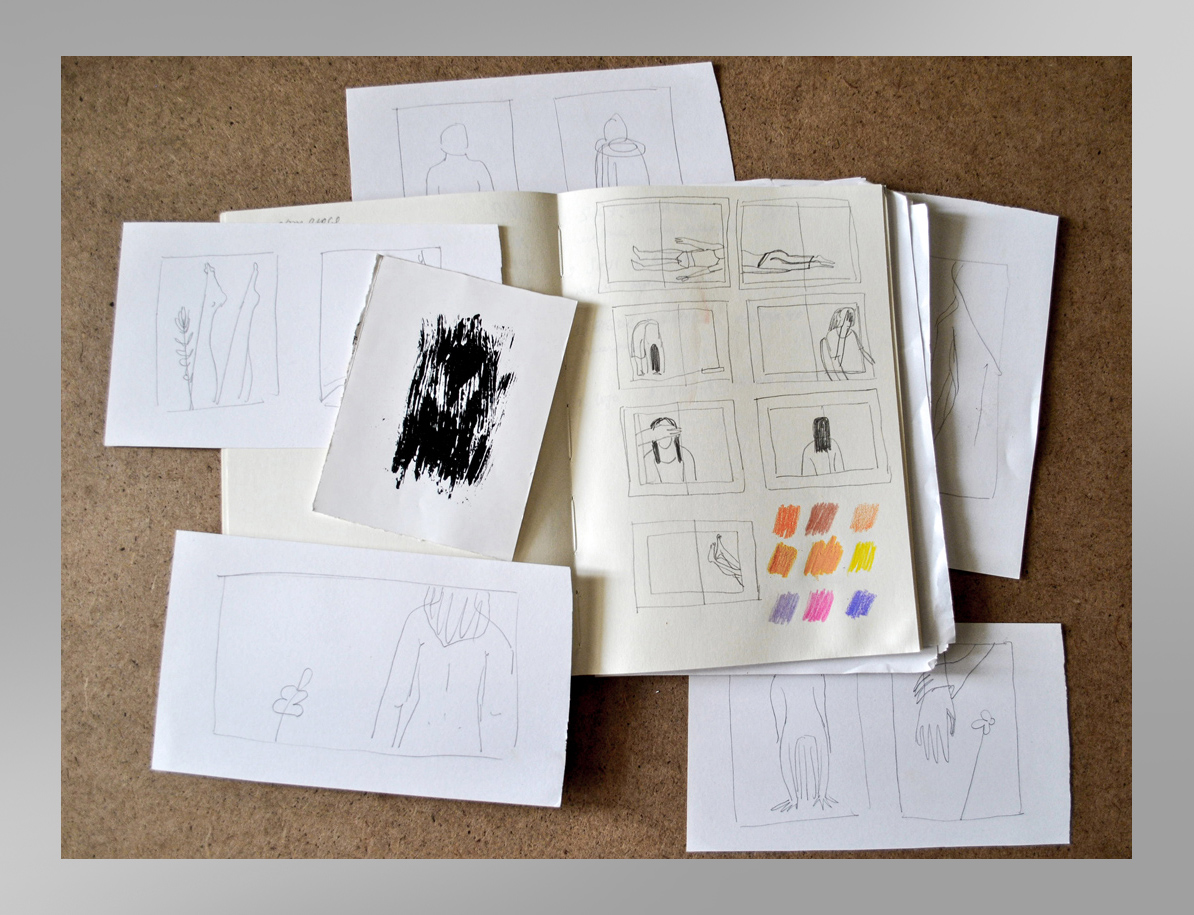 Романа Рубан: «З фотографкою Юліаною ми вирішили, що героїня зображень буде в умовному середовищі, де не буде нічого зайвого і це дасть змогу домальовувати тло чи додати графічних елементів. До фотосесії були зроблені умовні ескізи до розділів і окремих віршів, але робота з реальною людиною вносить корективи і дуже відрізняється від ілюстрування, плюс у колаборації з командою виникають ідеї, котрих не було до цього».