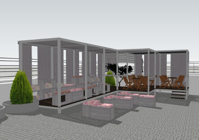 За підтримки краудфандингової платформи «Мой город», у співпраці бібліотекарів та архітекторки Марії Смірнової, було розроблено сучасне бачення організації читального простору, яке передбачає обладнання сонцезахисного навісу з місцями для столиків та книжкових полиць.