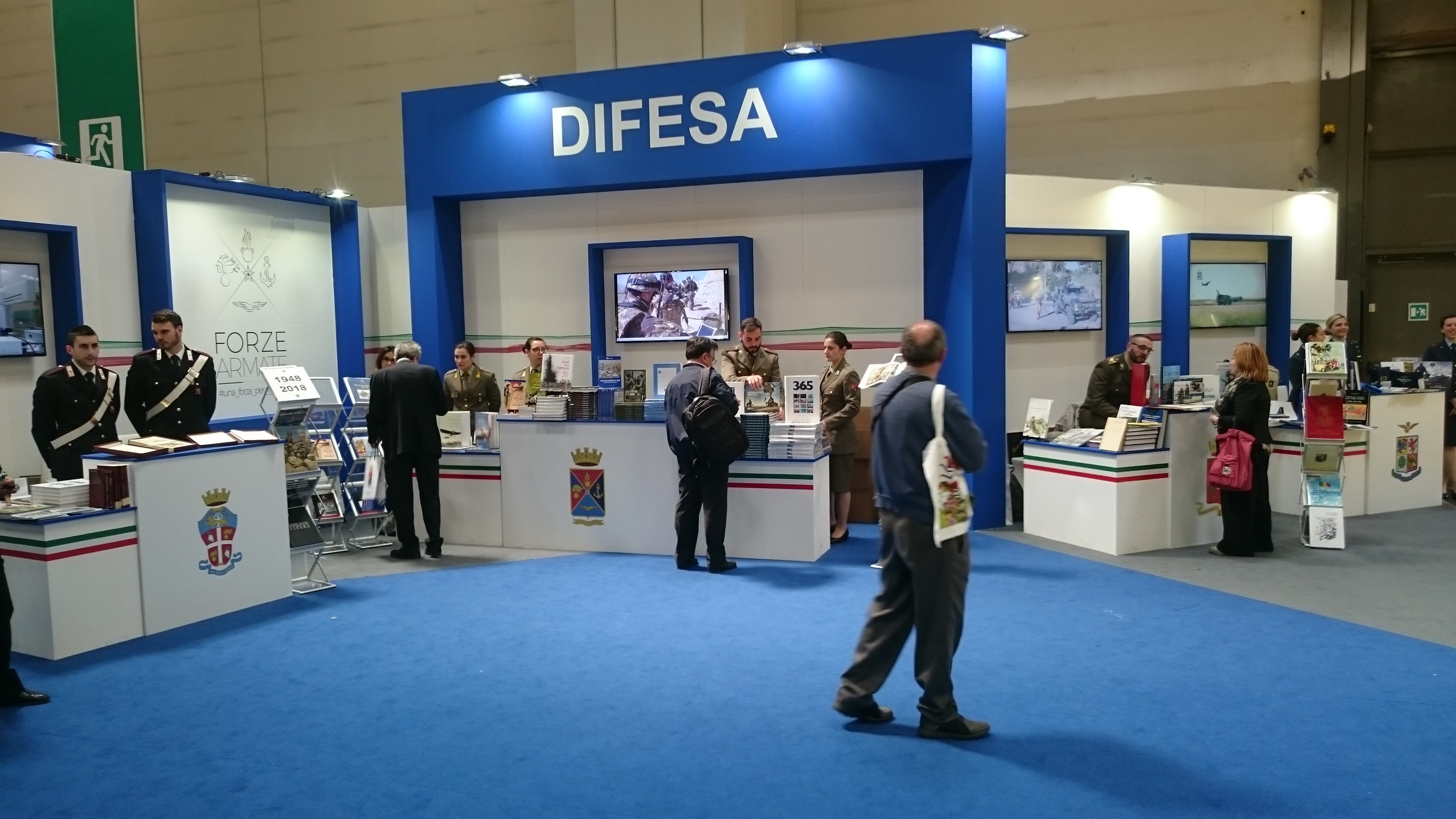 Друге – це стенди оборонного відомства Італії та поліції. Для нас таке — незвична практика, але в Італії безпекова складова досить суттєва в суспільному житті, й це проявляється навіть на книжковому ярмарку. На двох великих стендах люди в формі представляли книжкові та періодичні видання не лише загального спрямування, а й окремо, за родами військ – авіація, флот, спеціальні підрозділи, карабінери, поліцейські тощо (були, наприклад, військові моряки в парадних мундирах, що розповідали про кораблі та життя флоту). Не забуваймо, що сучасна Італія має драматичну історію терористичних атак, тому такої кількості співробітників служб безпеки (поліції, карабінерів, приватних охоронців) зі зброєю та спецтехнікою не побачите на жодній книжковій події світу. Окремо чергували бригади швидкої допомоги та пожежники, а вогнегасники стояли у великій кількості в кожному проході просто біля стін та колон опорних конструкцій.