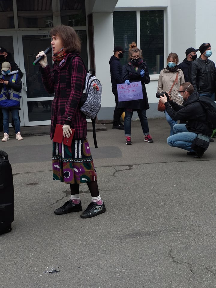 Біля будинку МВС по вулиці Богомольця зібралися близько 40-ка людей. Серед них були також поети Ія Ківа, Світлана Поваляєва, Дмитро Лазуткін, Євгенія Чуприна, Сергій Кривцов та Олена Гусейнова, які читали вірші на підтримку Хаєцького.