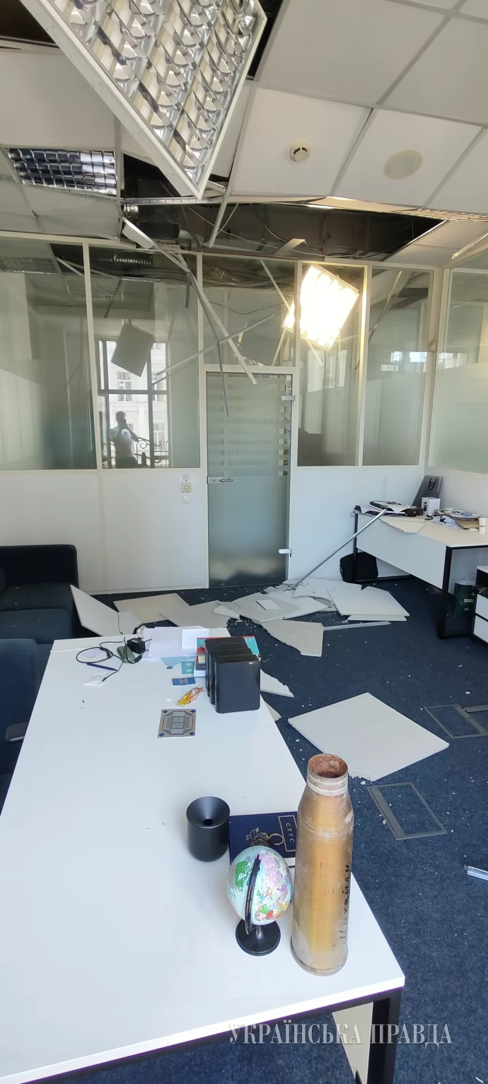 Постраждав також офіс видання «Українська правда», розташований у бізнес-центрі столиці. За даними редакції, ушкоджена будівля, серед співробітників постраждалих немає. Видання продовжує працювати у штатному режимі.