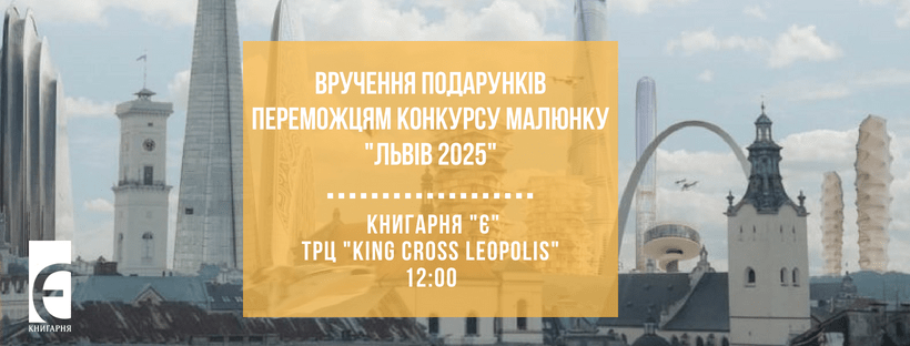 Книгарня «Є» (ТРЦ «King Cross Leopolis») запрошує учасників конкурсу та їхніх батьків, а також усіх охочих на урочисте вручення призів переможцям конкурсу «Львів у 2025 році».