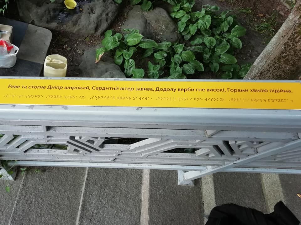 У Музеї Тараса Шевченка в Каневі на поручнях встановили табличками з віршами поета, які надруковані шрифтом Брайля. Про це повідомляє Projector.