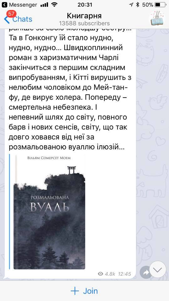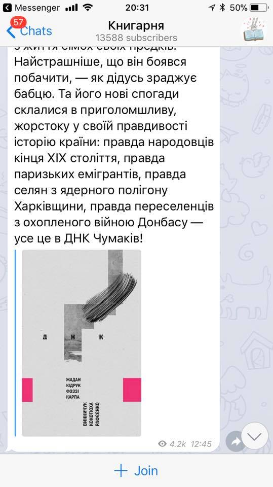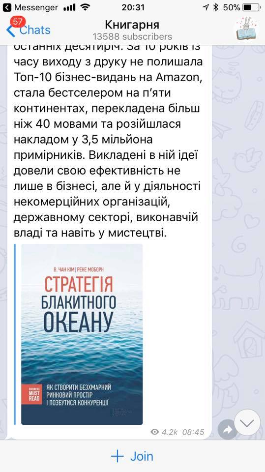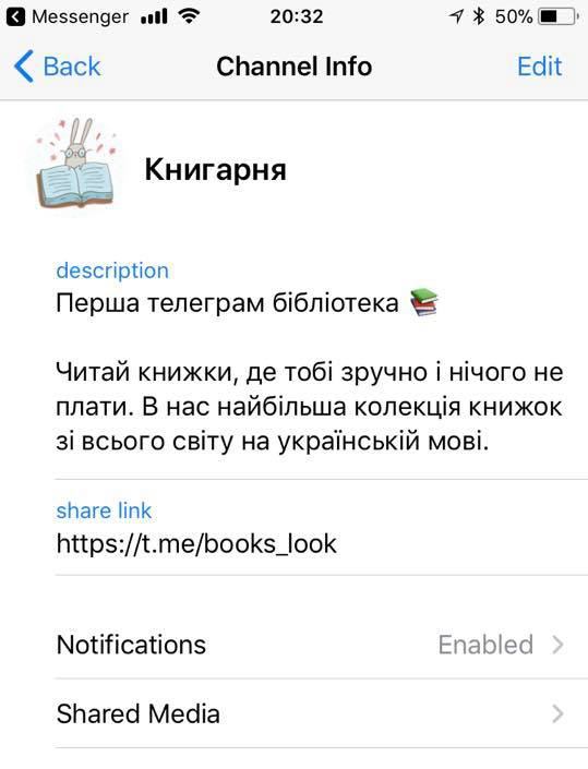 На канал під назвою «Книгарня» підписані понад 13,5 тис. користувачів. За словами адміністраторів, «перша телеграм-бібліотека» містить «найбільшу колекцію книжок українською».