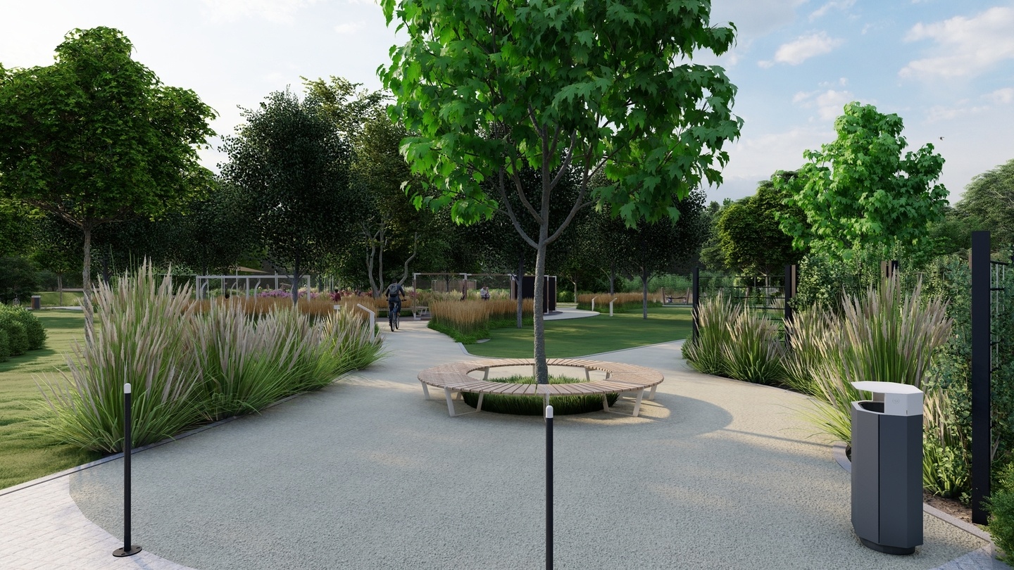 Зелена частина парку матиме понад 4 тисячі нових рослин та газон площею понад 1 тисячу м². Серед дерев — 14 одиниць, зокрема дуб шипшиновий, клен явір та ольха чорна. Також висадять близько 400 кущів, багаторічні рослини, декоративні трави та цибулинні рослини.