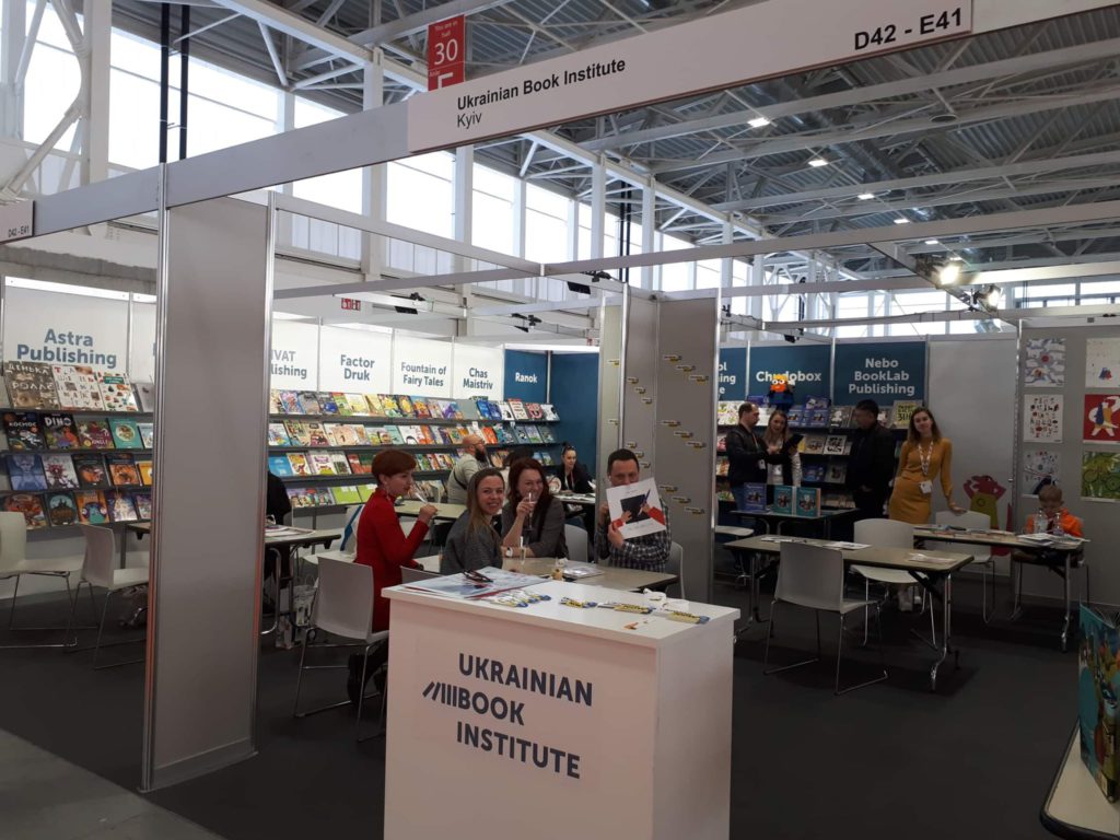 Національний стенд, який організовує Український інститут книги, має площу 64 м² (номер стенда – hall 30, D42-E41). Свої книжки покажуть 15 українських видавництв: А-ба-ба-га-ла-ма-га, Астра, Артбукс, Арт Нейшн, Час Майстрів, Chudobox, Фактор-друк, Фонтан казок, Каламар, Nebo BookLab, Ранок, Видавничий дім “Школа”, Чорні вівці, Видавництво Старого Лева та VIVAT.
