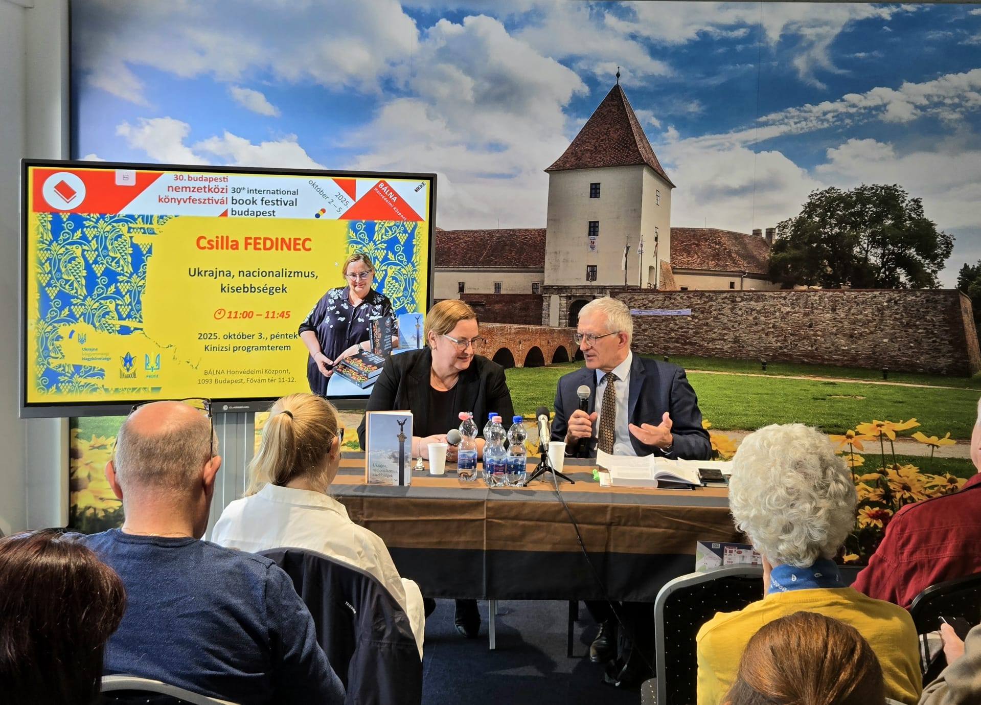 Про взаємодію України, націоналізму та меншин говорила Чілла Фединець, старша наукова співробітниця Інституту досліджень меншин Центру соціальних наук Угорщини, презентуючи свою книжку «Україна, націоналізм, меншини».