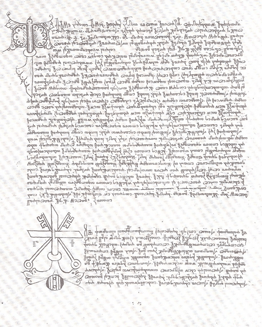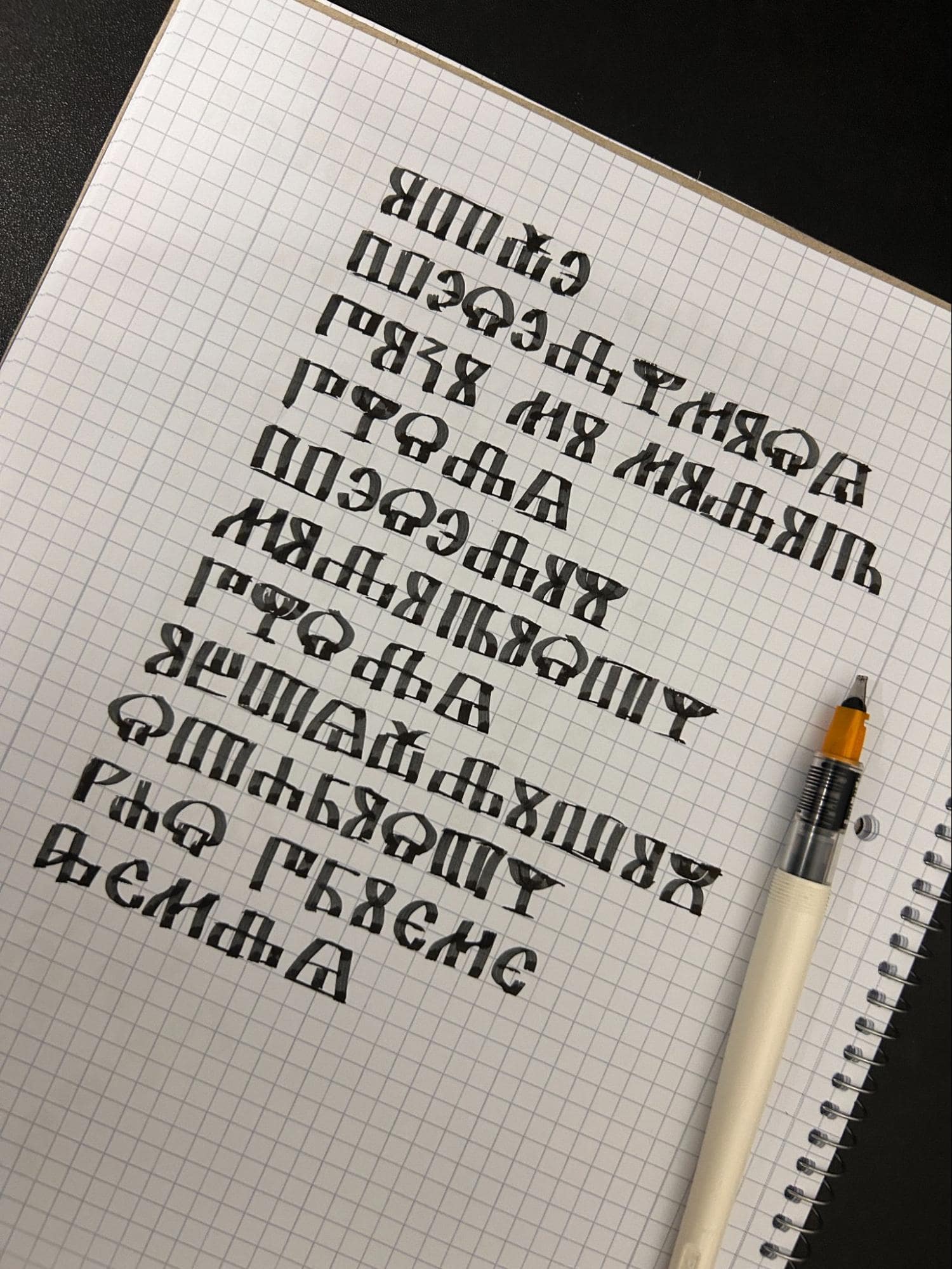 Тут можна подивитися процес написання тексту углатою глаголицею пласким пером.