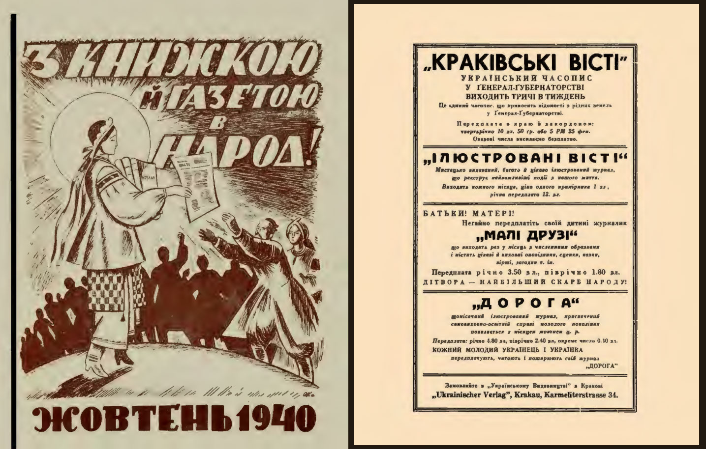 Видавництво, що було чужим для своїх, незручним, а то й небажаним для чужих. Але за всіх обставин трималося своєї лінії: бути відданим своєму народові, який існує без держави. «Українське видавництво» (1939-1945) у Кракові існувало на специфічній території, породженій Другою світовою війною, Генеральній губернії – окупованій німцями в 1939-1945 роках центральній частині Польщі, яка мала статус своєрідної колонії Німеччини зі специфічним статусом. Це було єдине дозволене окупаційною владою українське видавництво. Його ініціатором і керівником виступив Володимир Кубійович – відомий професор, багатолітній Голова Українського центрального комітету (УЦК) – єдиної суспільно-громадської установи для українців на цій території.