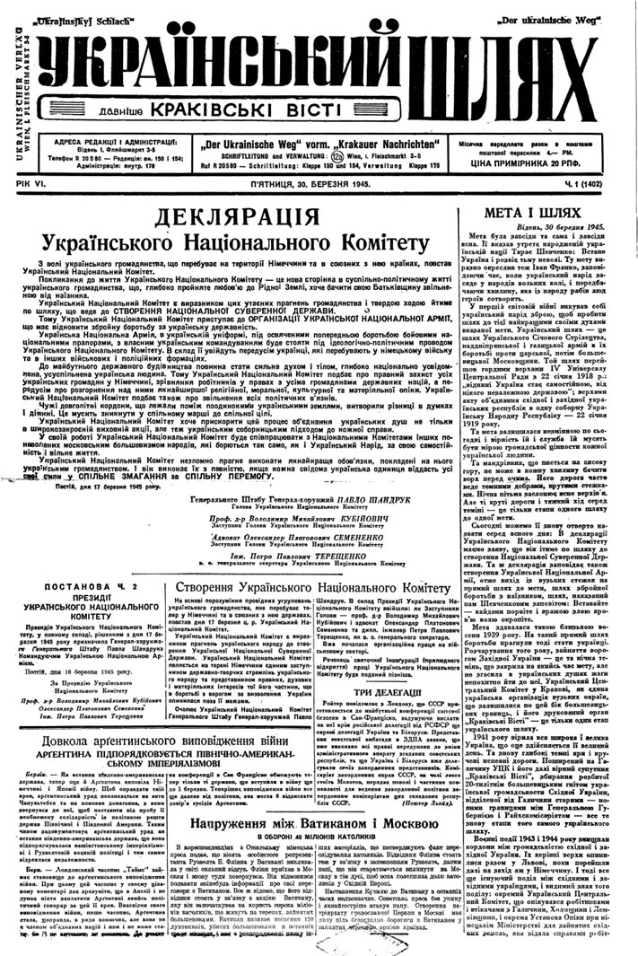 Краківський період буття цієї газети припинився восени 1944 року. Вихід із такою назвою відновився у Відні 10 жовтня того ж року (виходив там до 4 квітня 1945 року). Незмінним редактором був Михайло Хом’як, а його заступником – письменник Богдан Лепкий. За весь час у світ вийшло 1400 чисел. Наклади коливалися від 3040 до 10350 примірників.